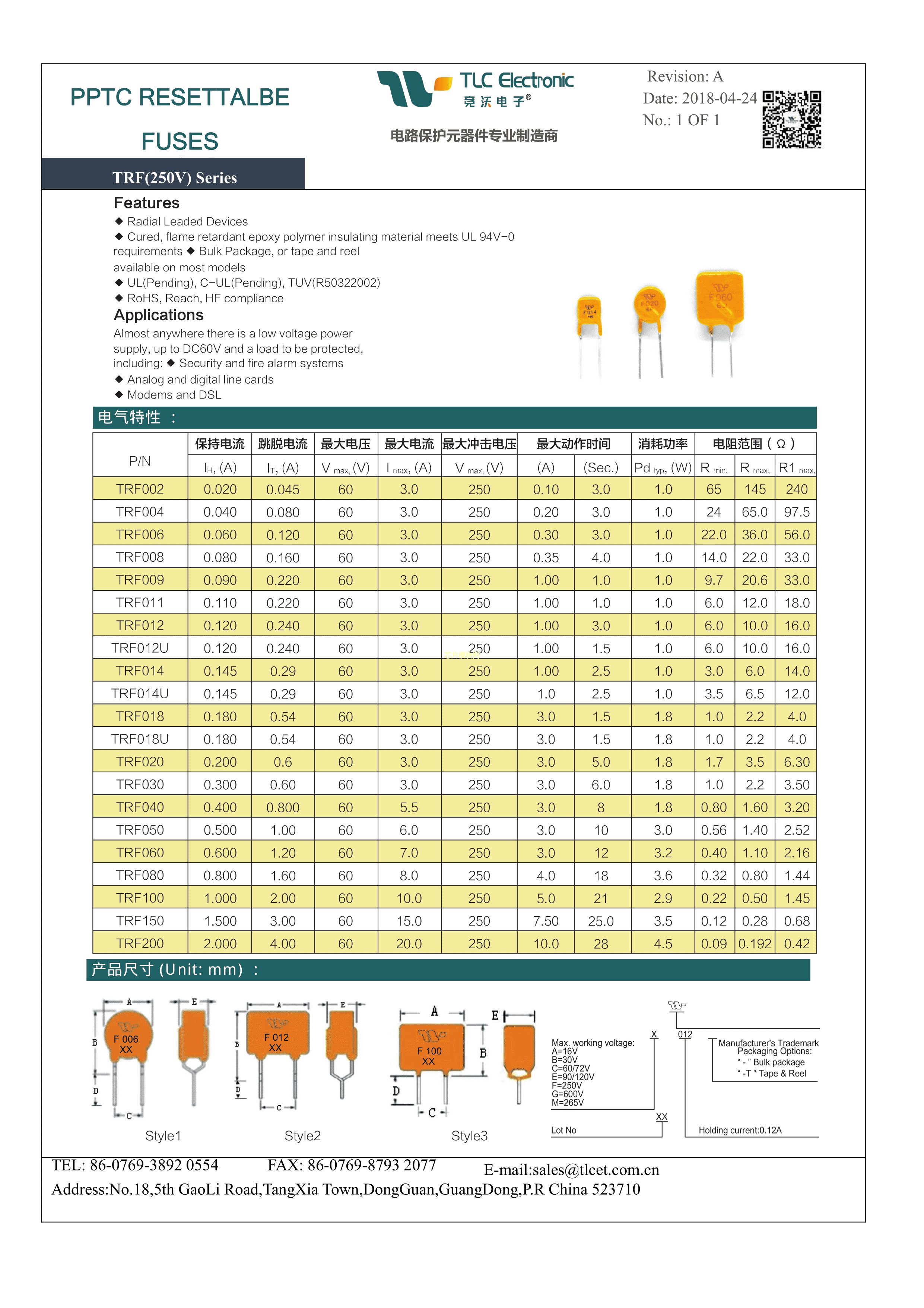 TRF060数据手册径向引线P5.1mm封装TLC(竞沃)PDF规格书,中英文下载