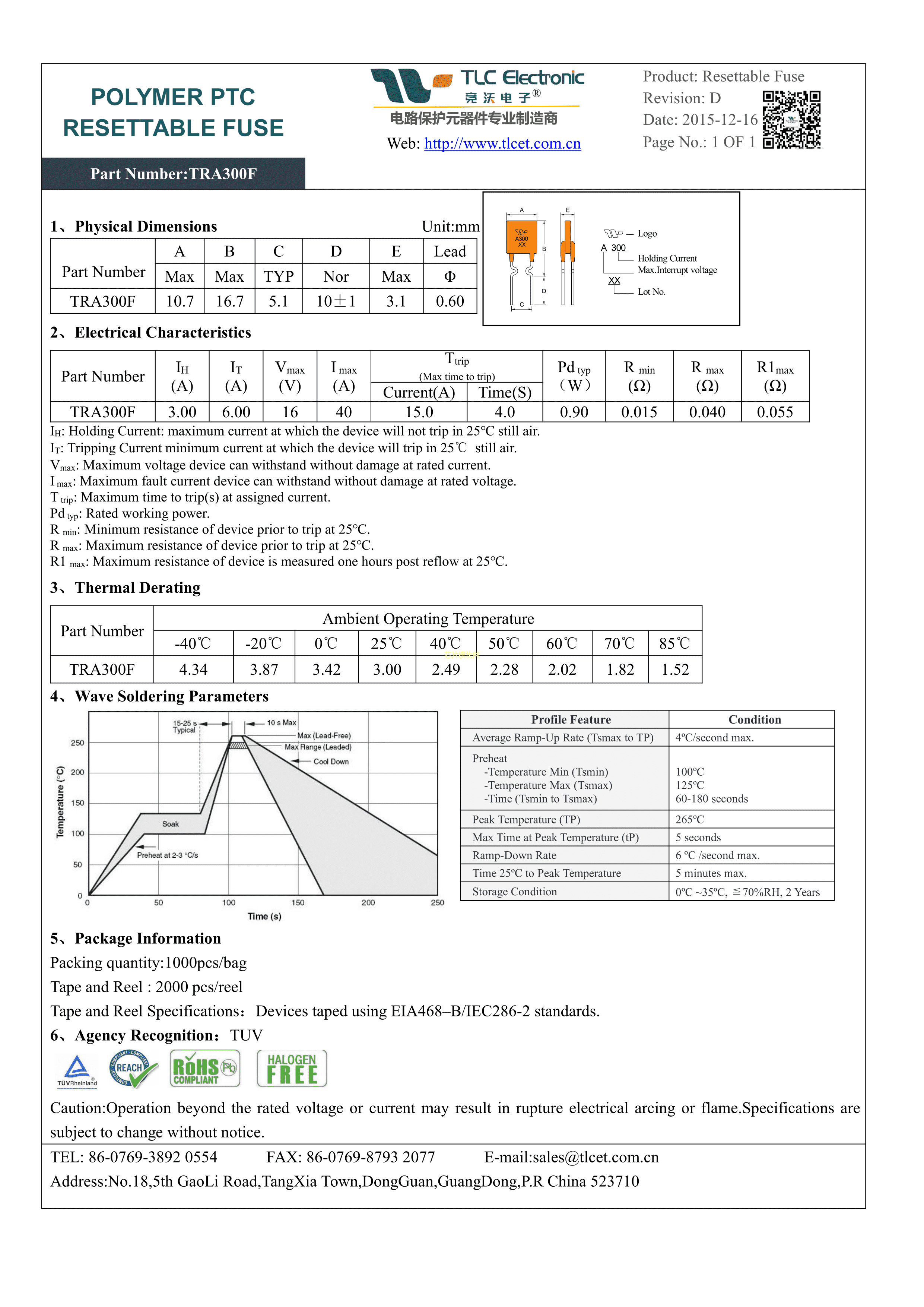 TRA300F数据手册径向引线P5.1mmL10mm封装TLC(竞沃)PDF规格书,中英文下载
