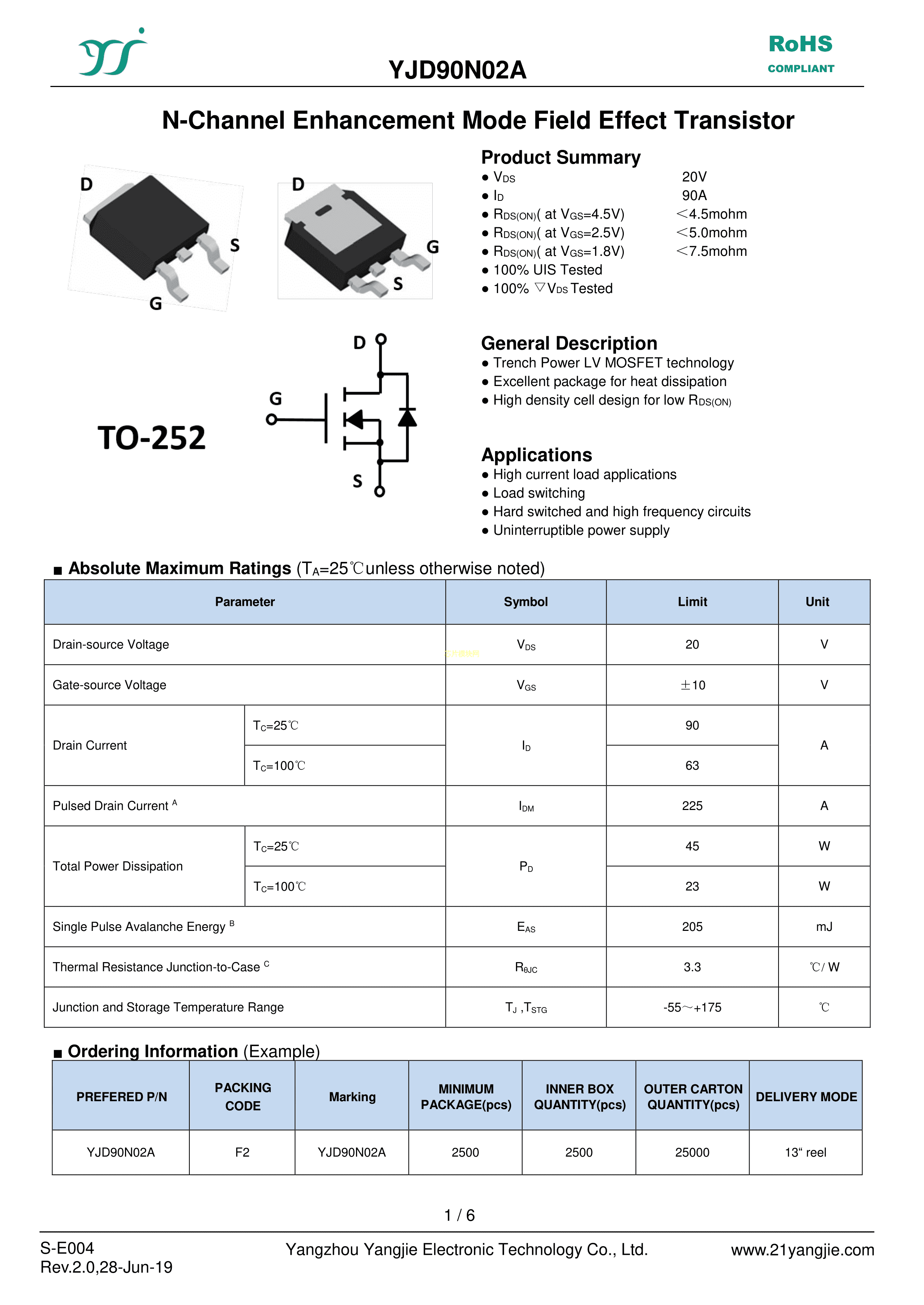 YJD90N02A数据手册TO-252封装YANGJIE(扬杰)PDF规格书,中英文下载