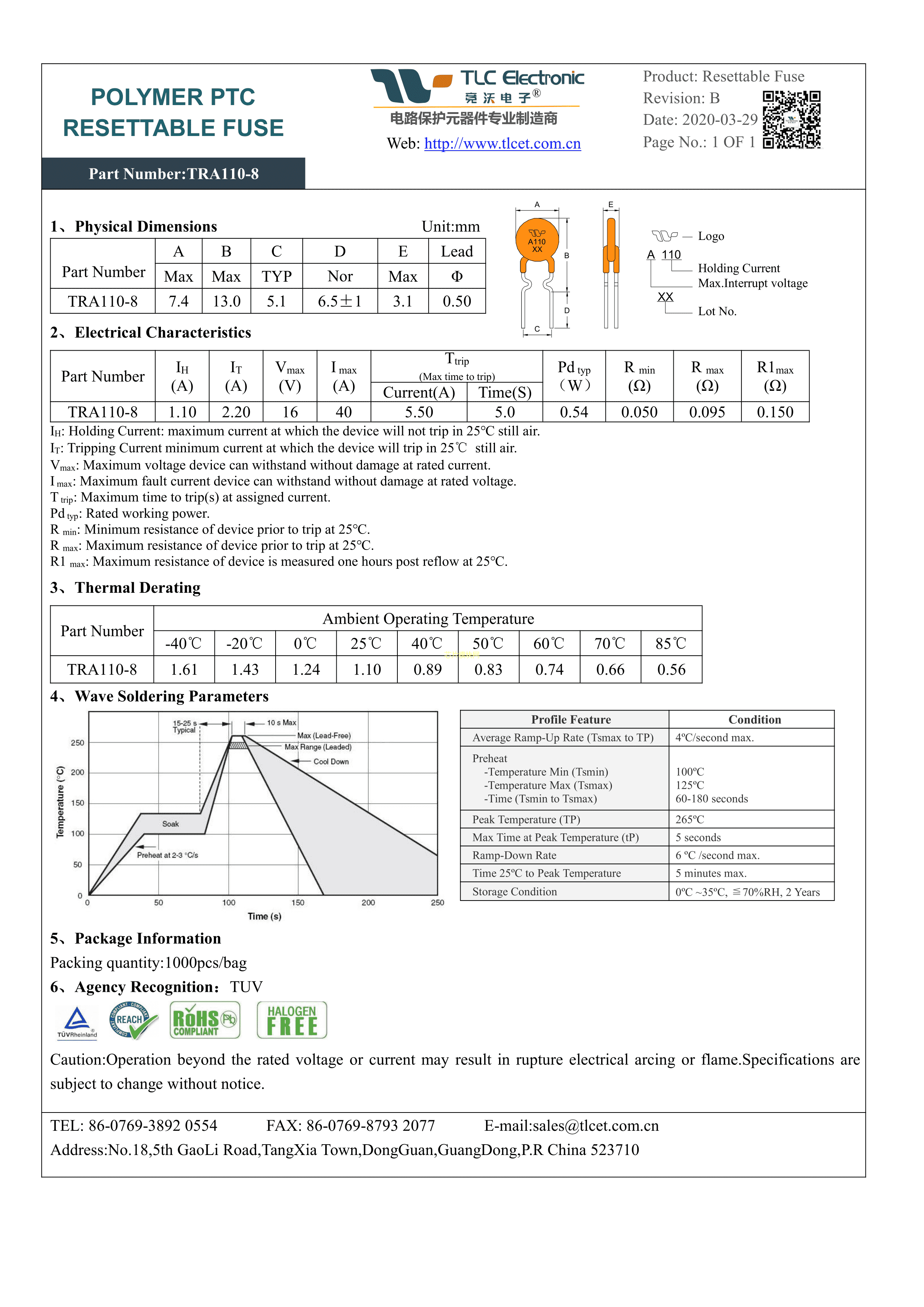 TRA110-8数据手册径向引线P5.1mmL6.5mm封装TLC(竞沃)PDF规格书,中英文下载