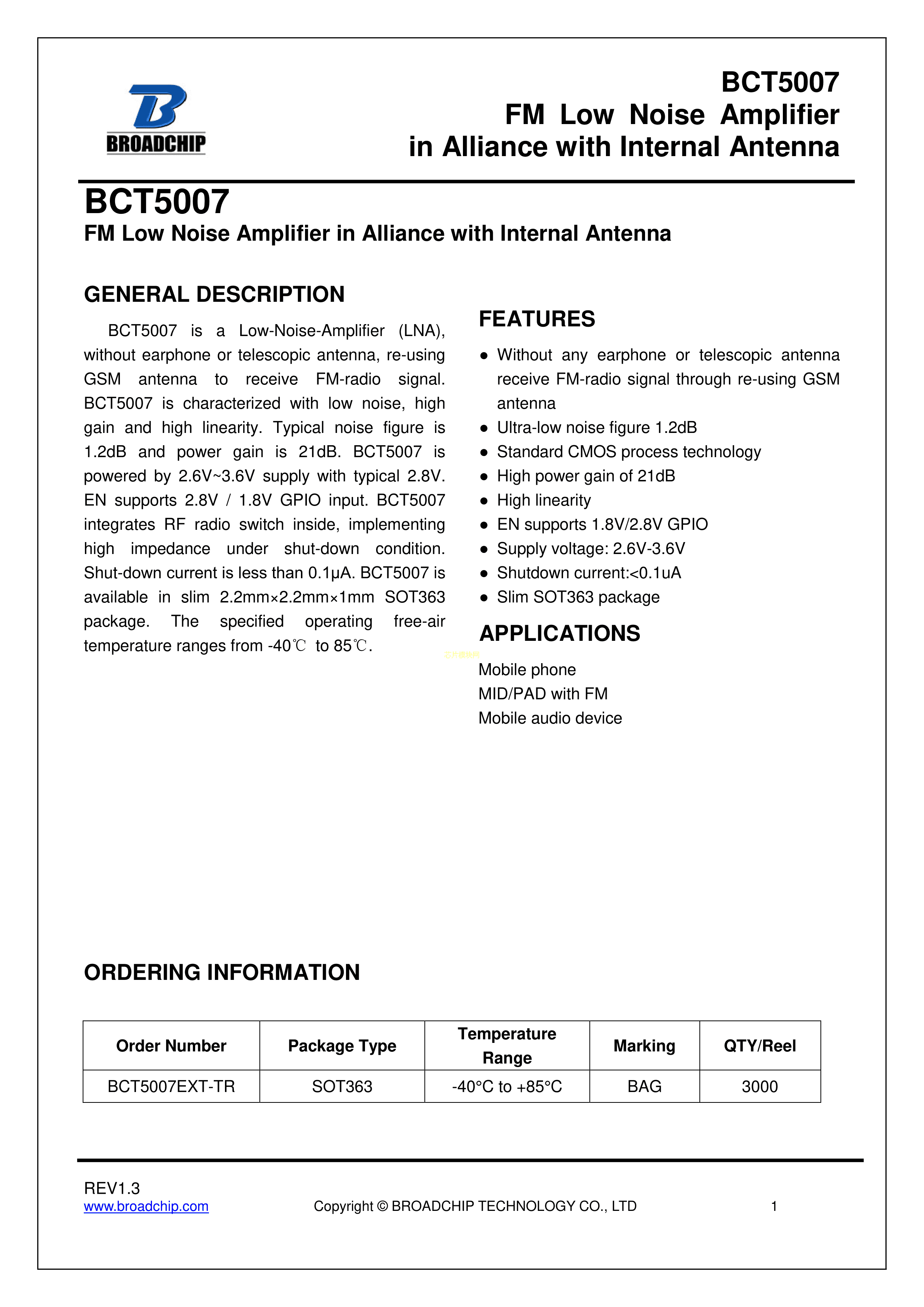 BCT5007EXT-TR数据手册SOT-363封装BROADCHIP(广芯电子)PDF规格书,中英文下载