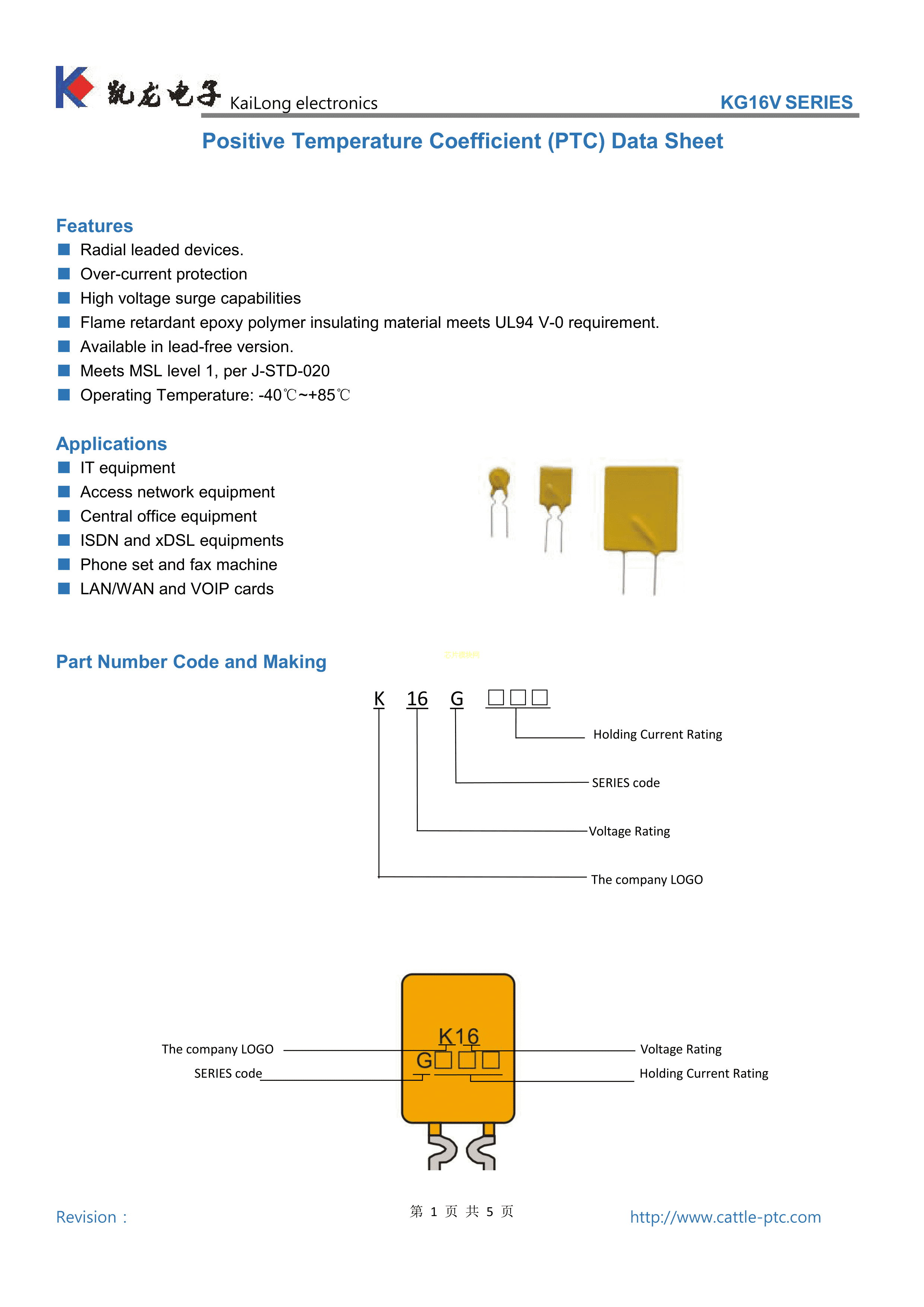 K16G1100数据手册径向引线P5.1mm封装KAILONG(凯龙)PDF规格书,中英文下载