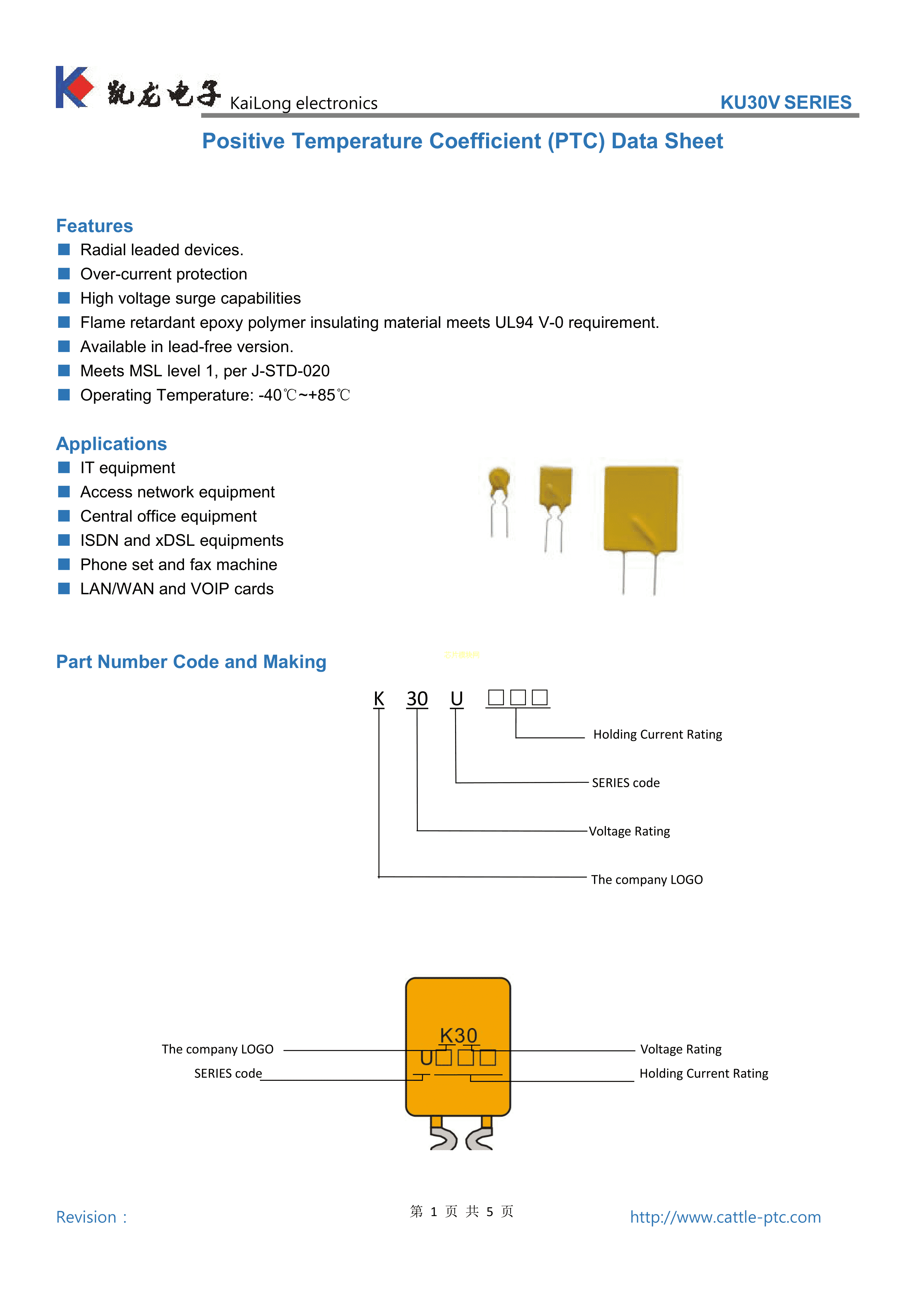 K30U110数据手册径向引线P5.1mm封装KAILONG(凯龙)PDF规格书,中英文下载