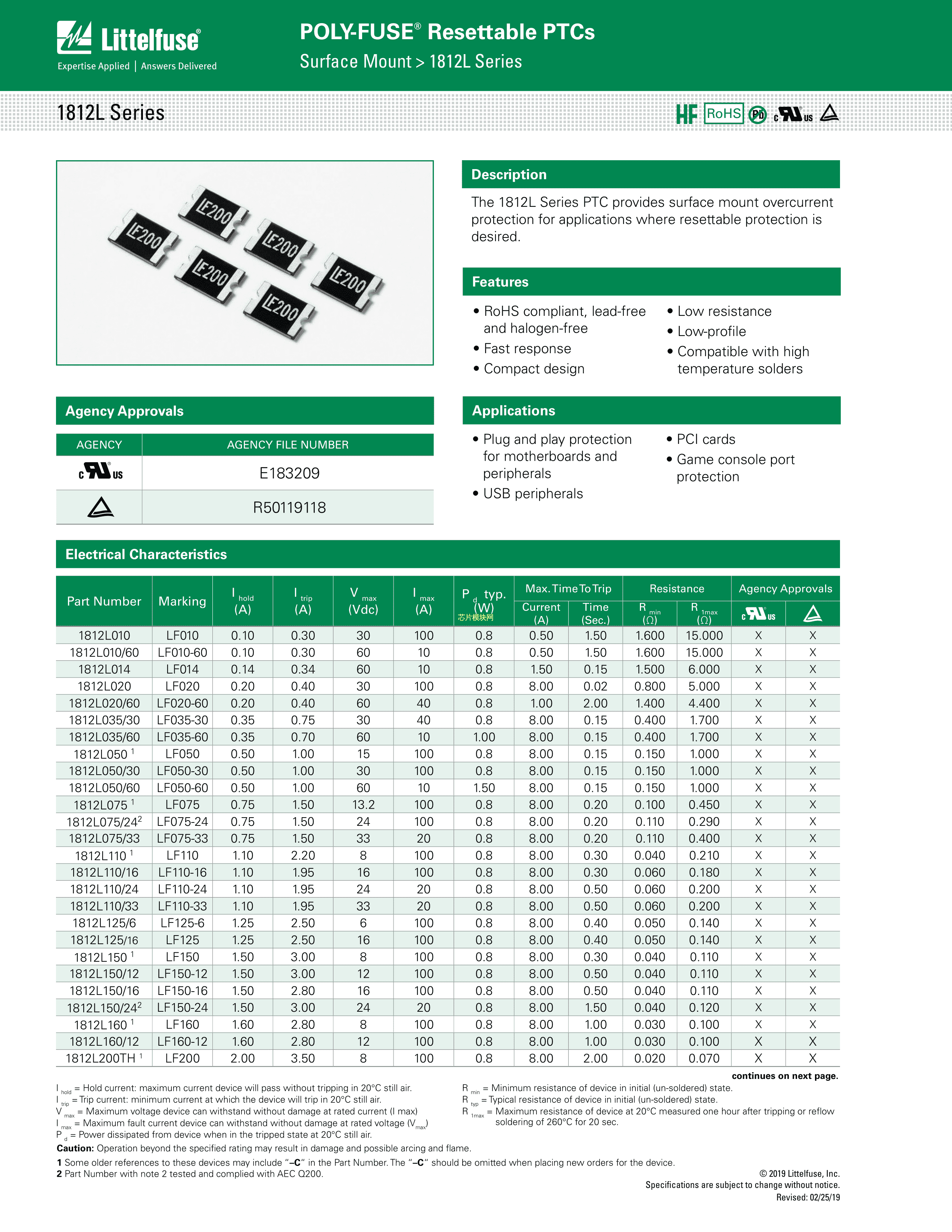1812L110-33MR-A数据手册1812封装Littelfuse(美国力特)PDF规格书,中英文下载