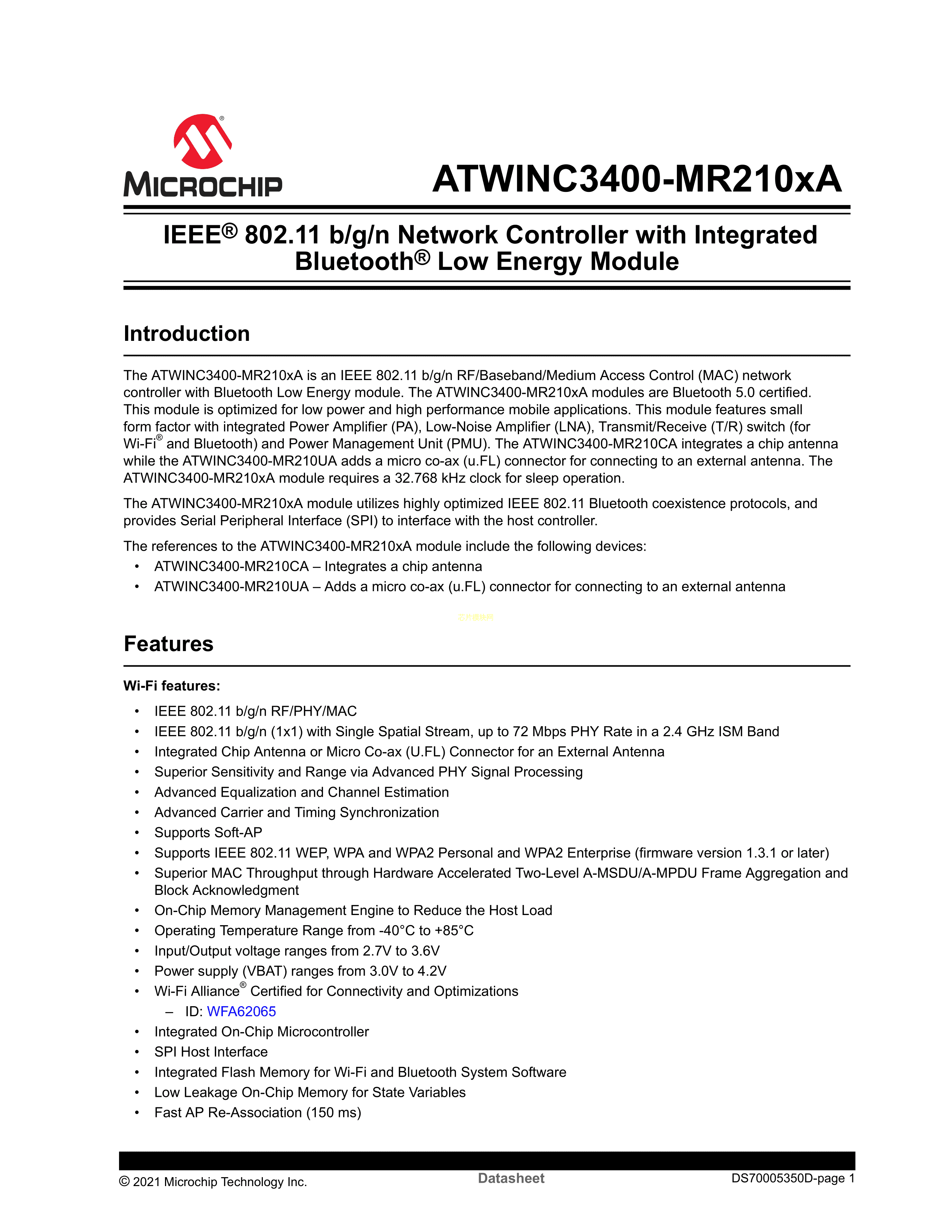 ATWINC3400-MR210CA131-T数据手册Module封装MICROCHIP(美国微芯)PDF规格书,中英文下载