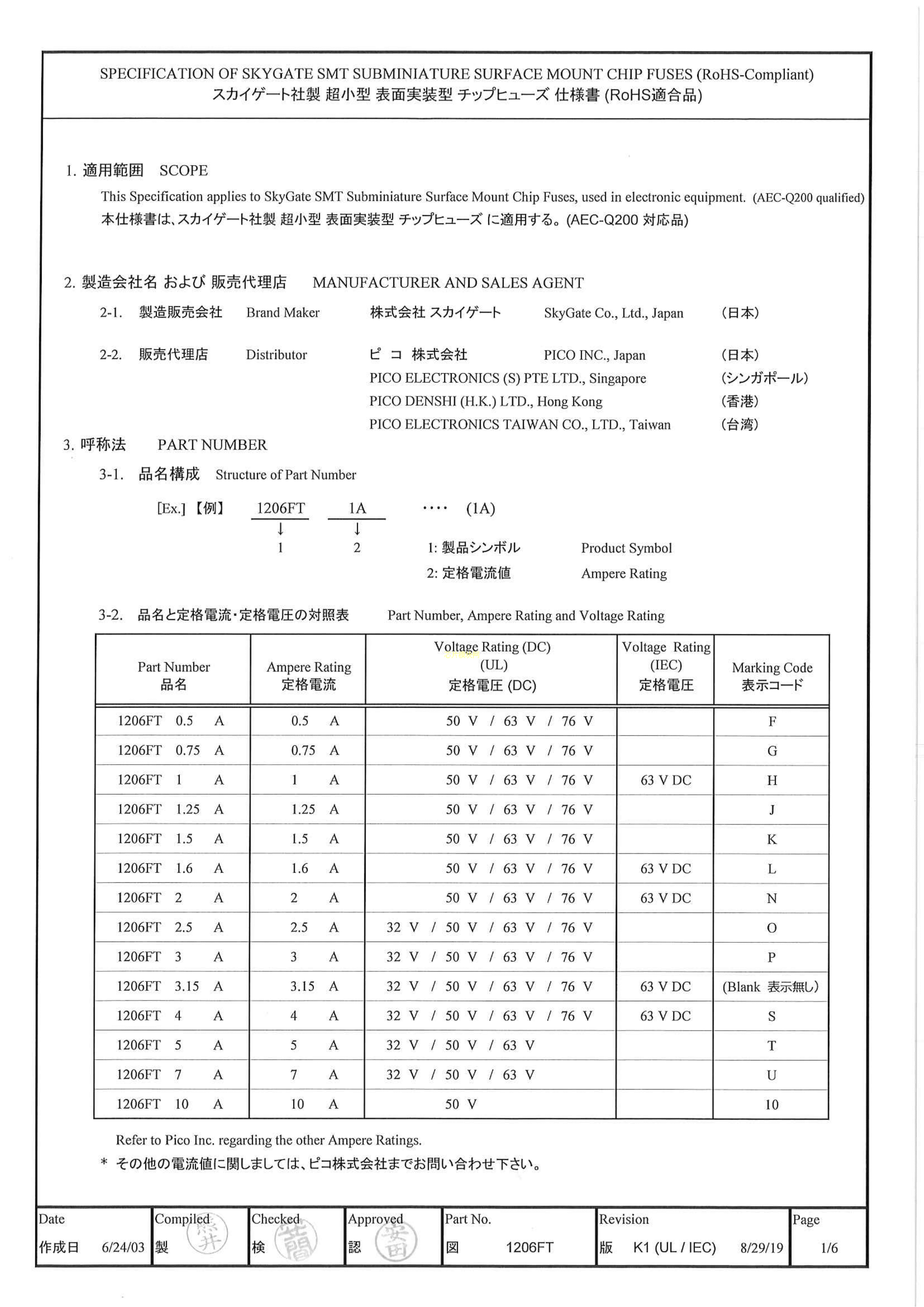 1206FT2A数据手册1206封装Skygate(天宇匹克)PDF规格书,中英文下载