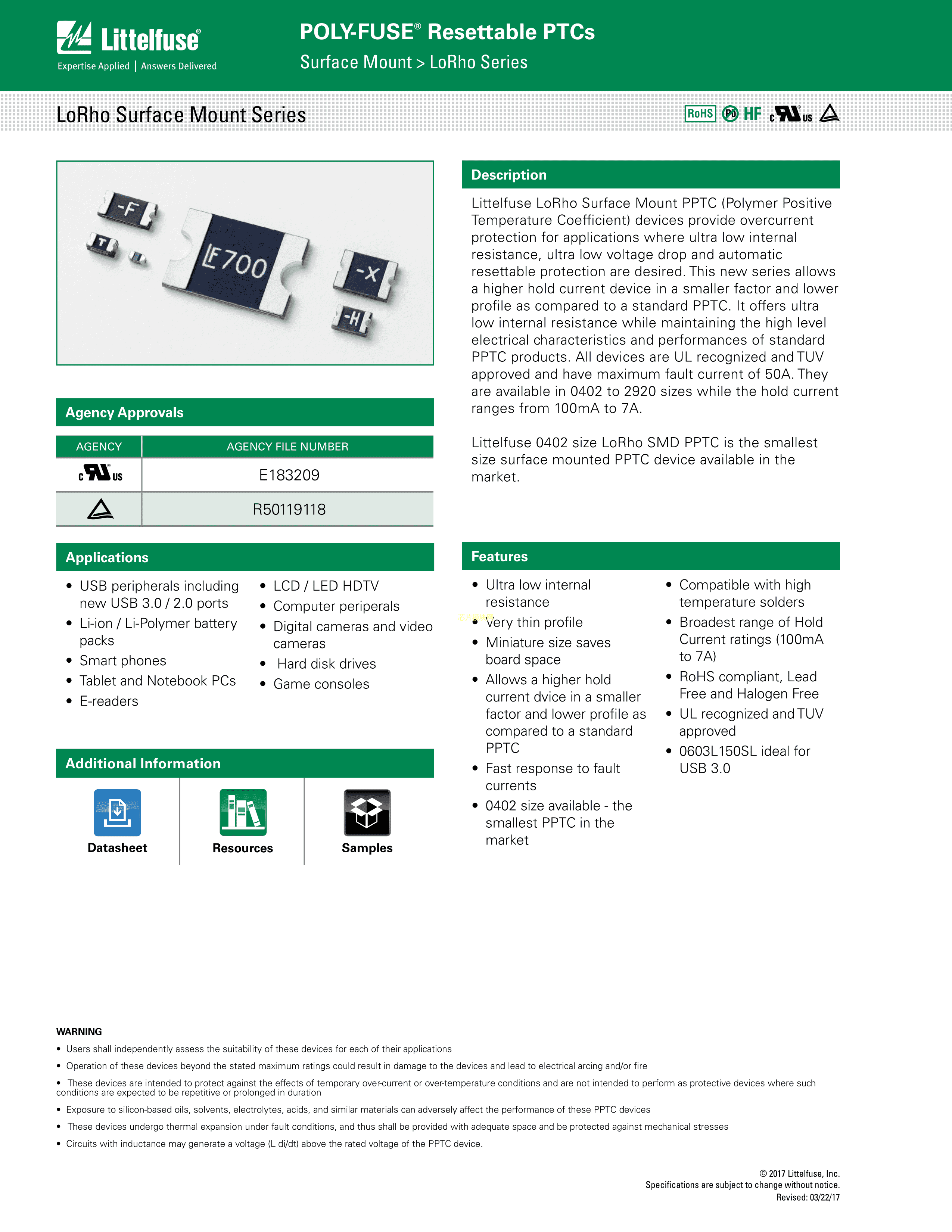 0603L175SLYR数据手册0603封装Littelfuse(美国力特)PDF规格书,中英文下载