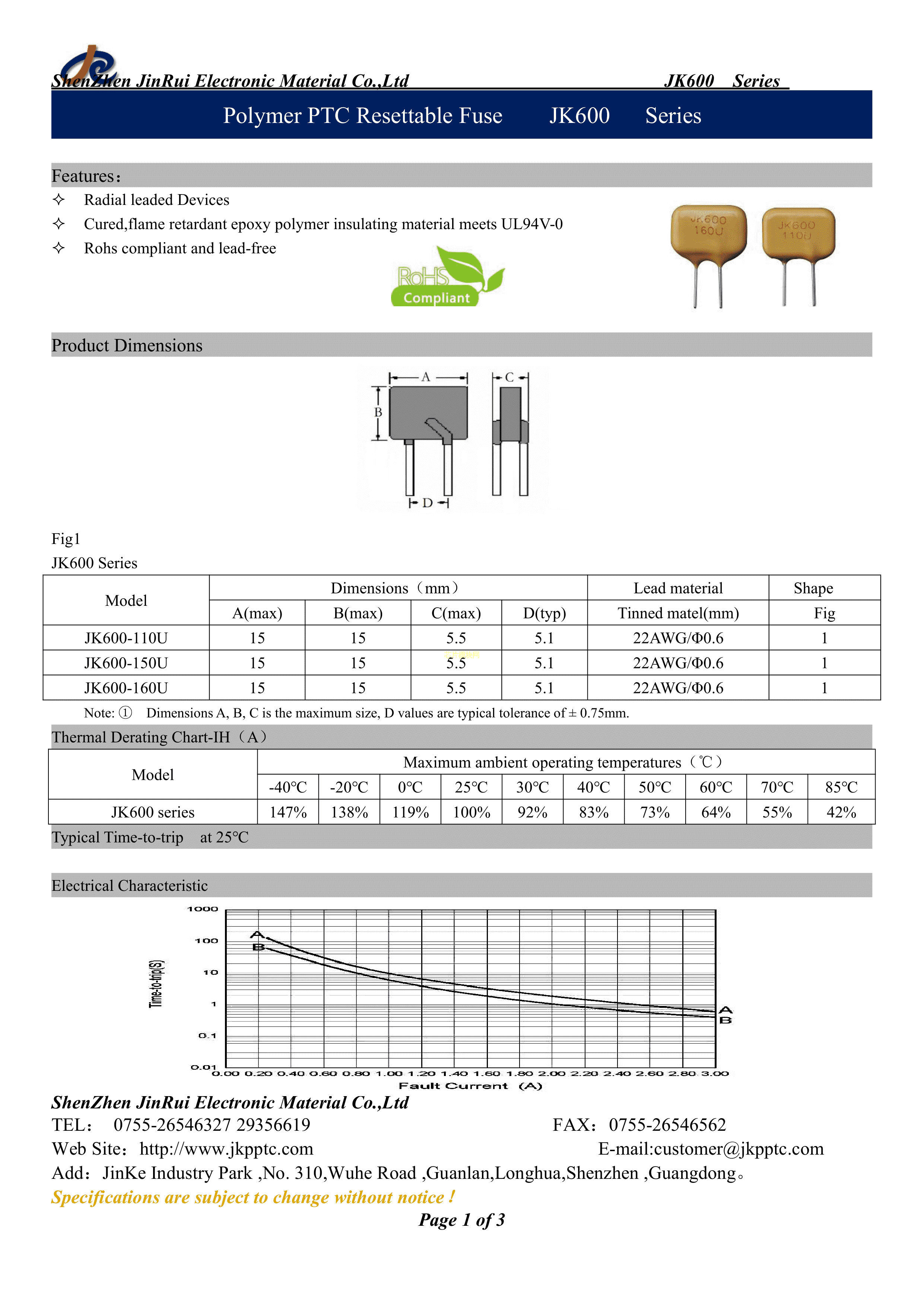 JK600-110U数据手册径向引线P5.1mm封装JK(金科)PDF规格书,中英文下载