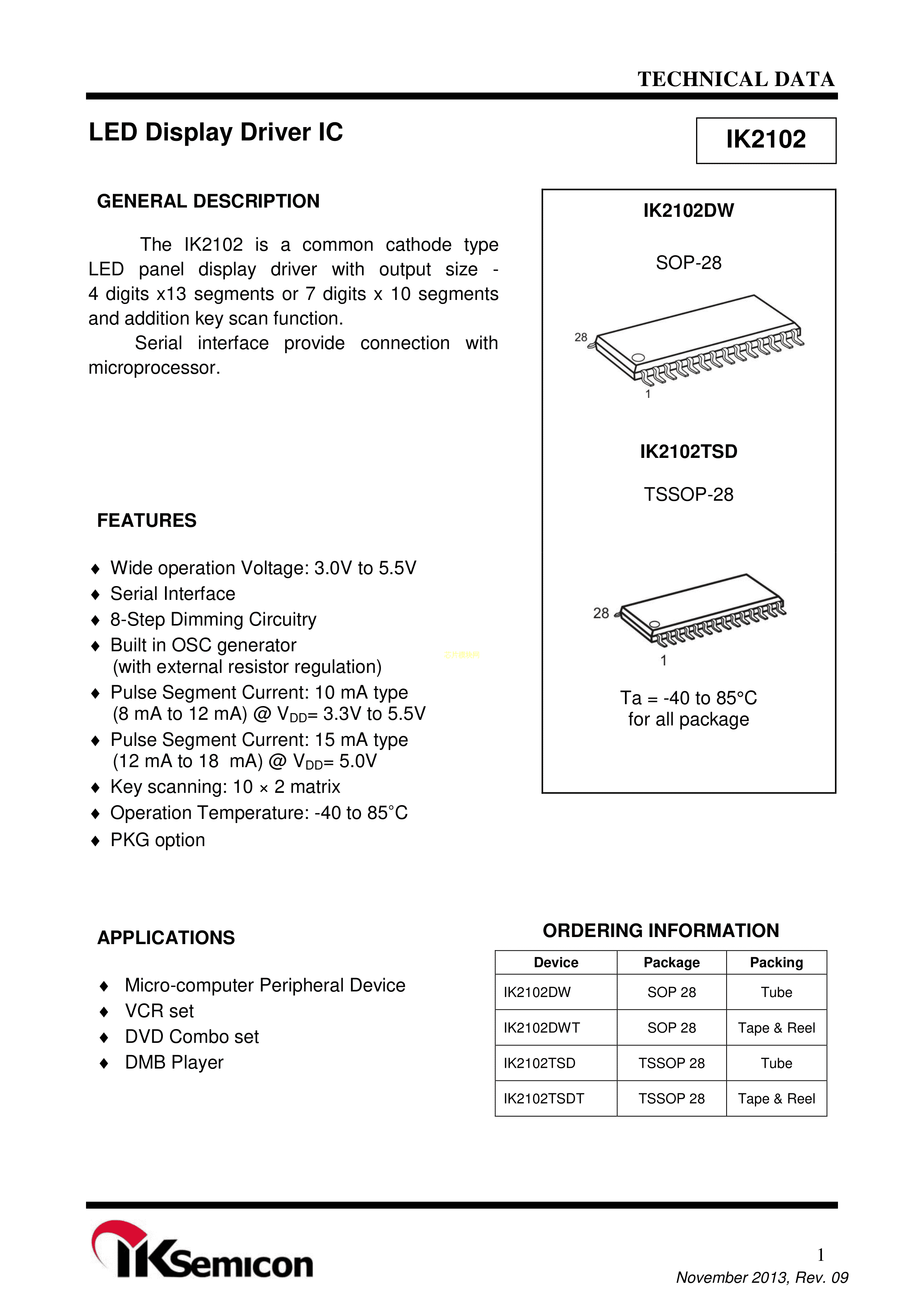 IK2102DWT数据手册SOP-28封装IKSEMICONPDF规格书,中英文下载