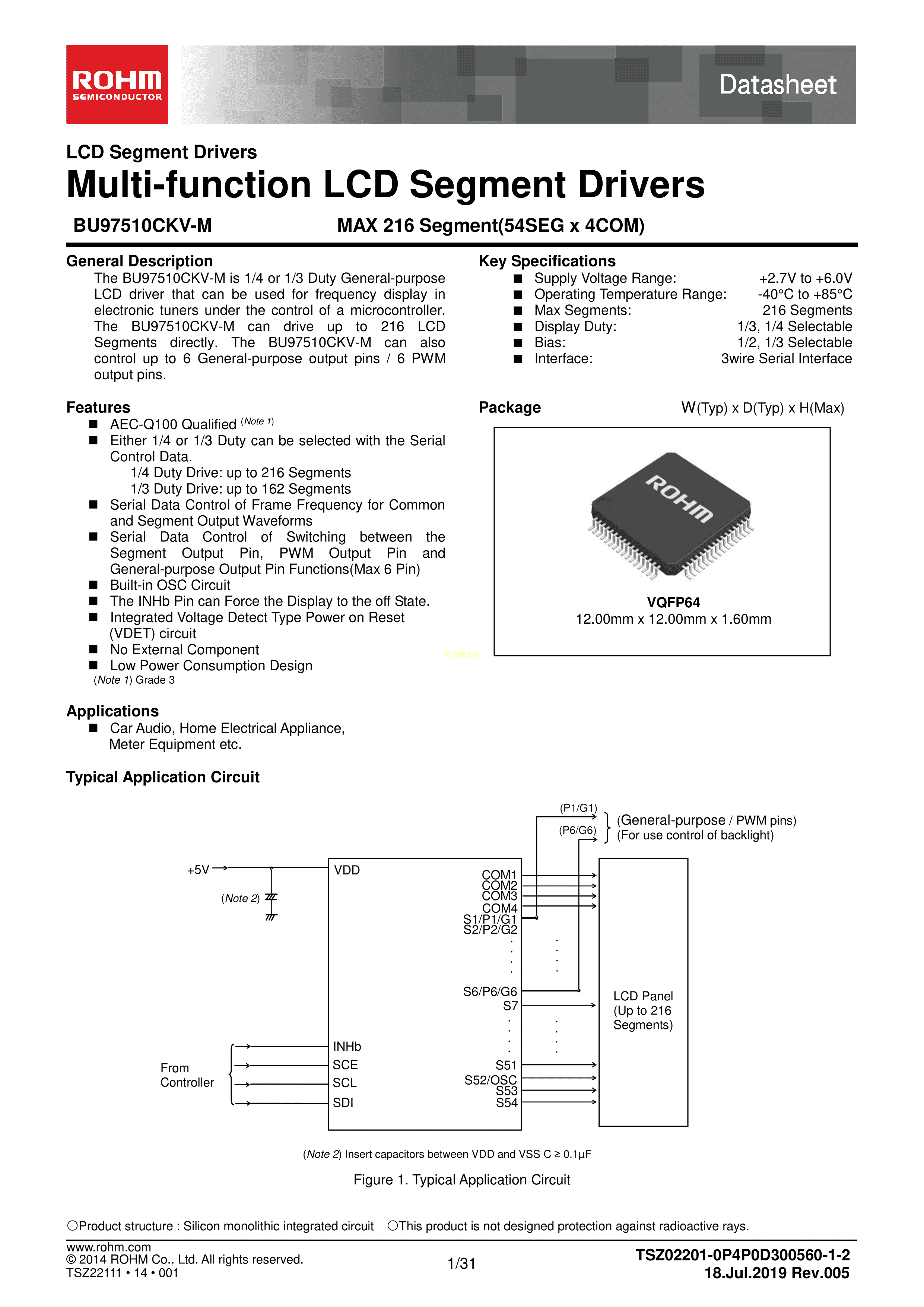 BU97510CKV-ME2数据手册VQFP-64封装ROHM(罗姆)PDF规格书,中英文下载