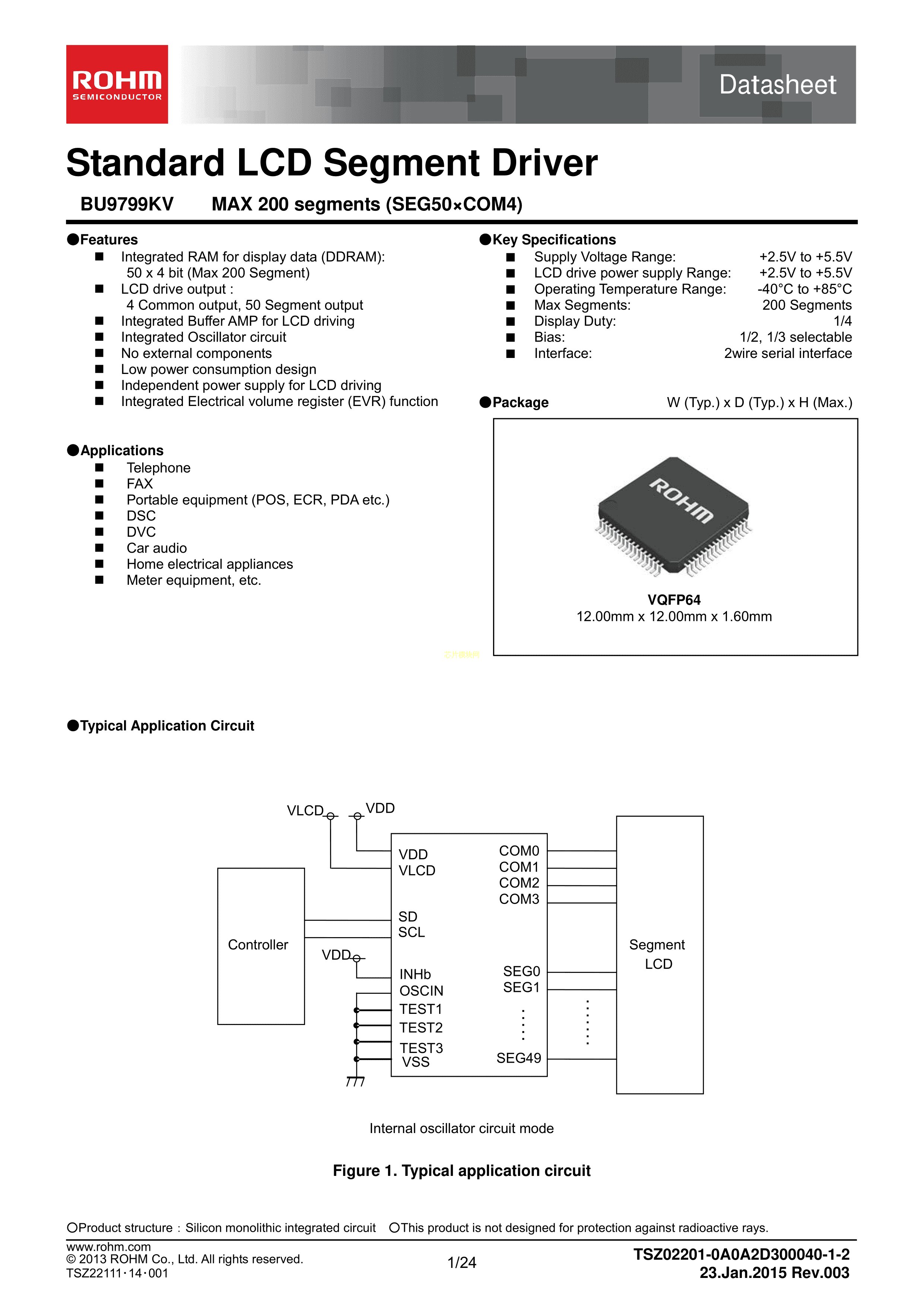 BU9799KV-E2数据手册VQFP-64(10x10)封装ROHM(罗姆)PDF规格书,中英文下载