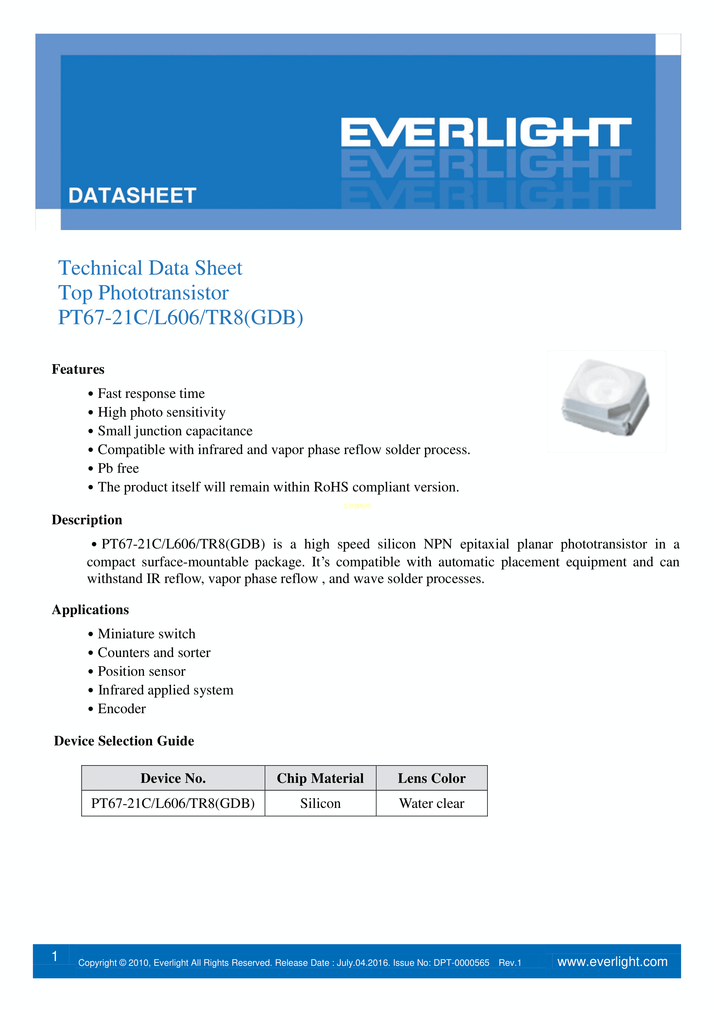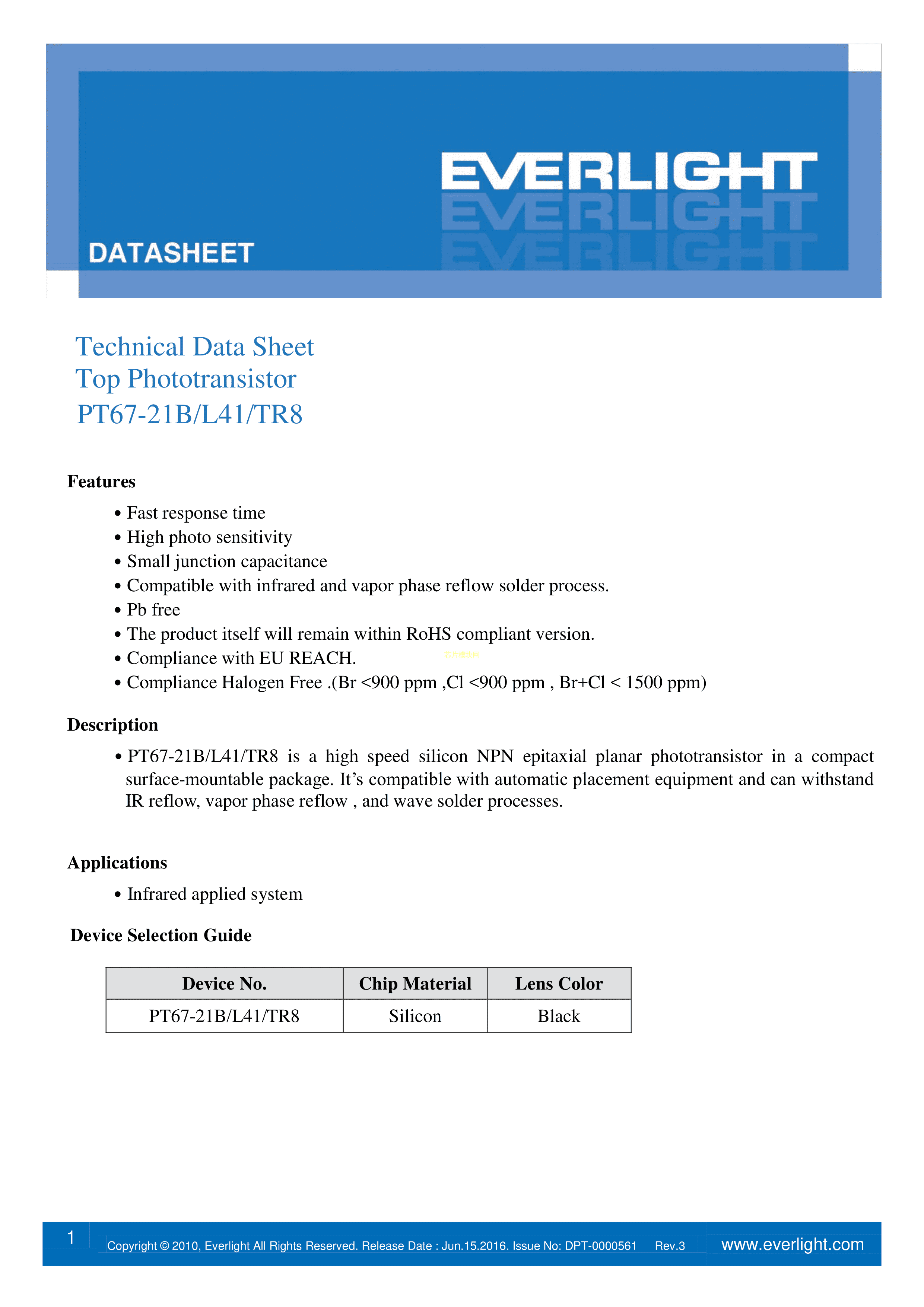 PT91-21B-TR7数据手册SMD封装EVERLIGHT(台湾亿光)PDF规格书,中英文下载