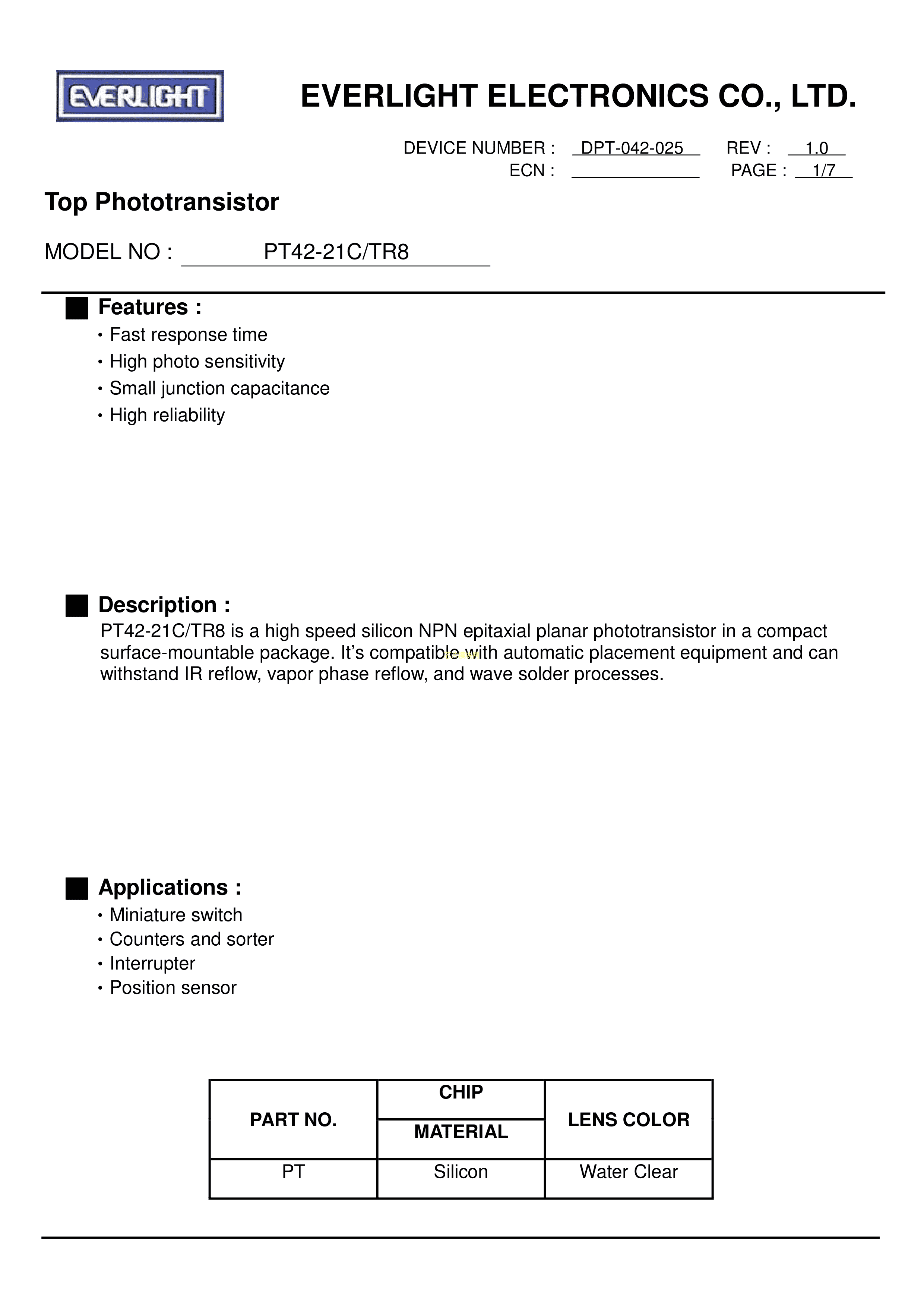 PT42-21C-TR8数据手册1206封装EVERLIGHT(台湾亿光)PDF规格书,中英文下载