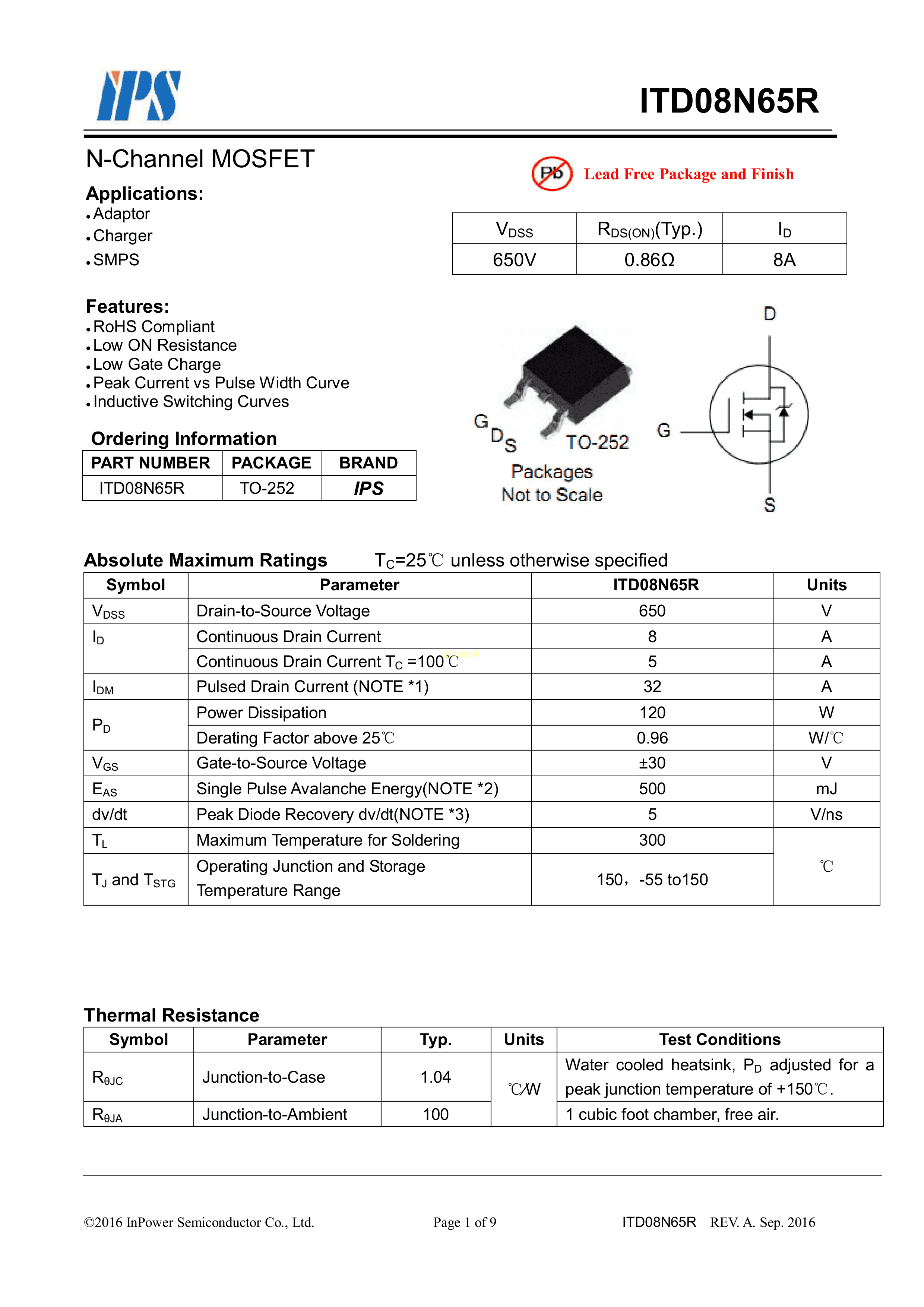 ITD08N65R数据手册TO-252封装CRMICRO(华润微)PDF规格书,中英文下载
