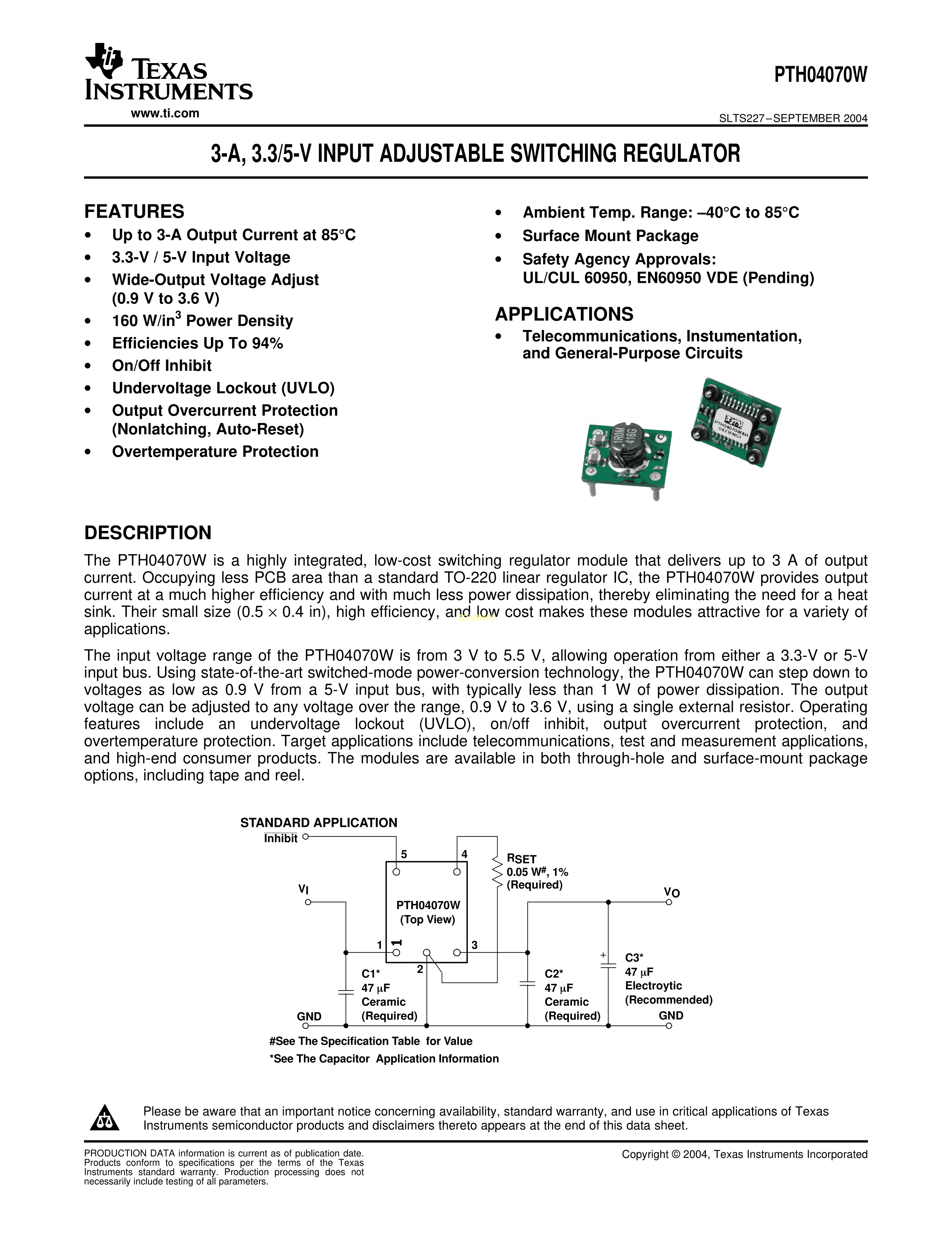 PTH04070WAH数据手册Module封装TI(德州仪器)PDF规格书,中英文下载