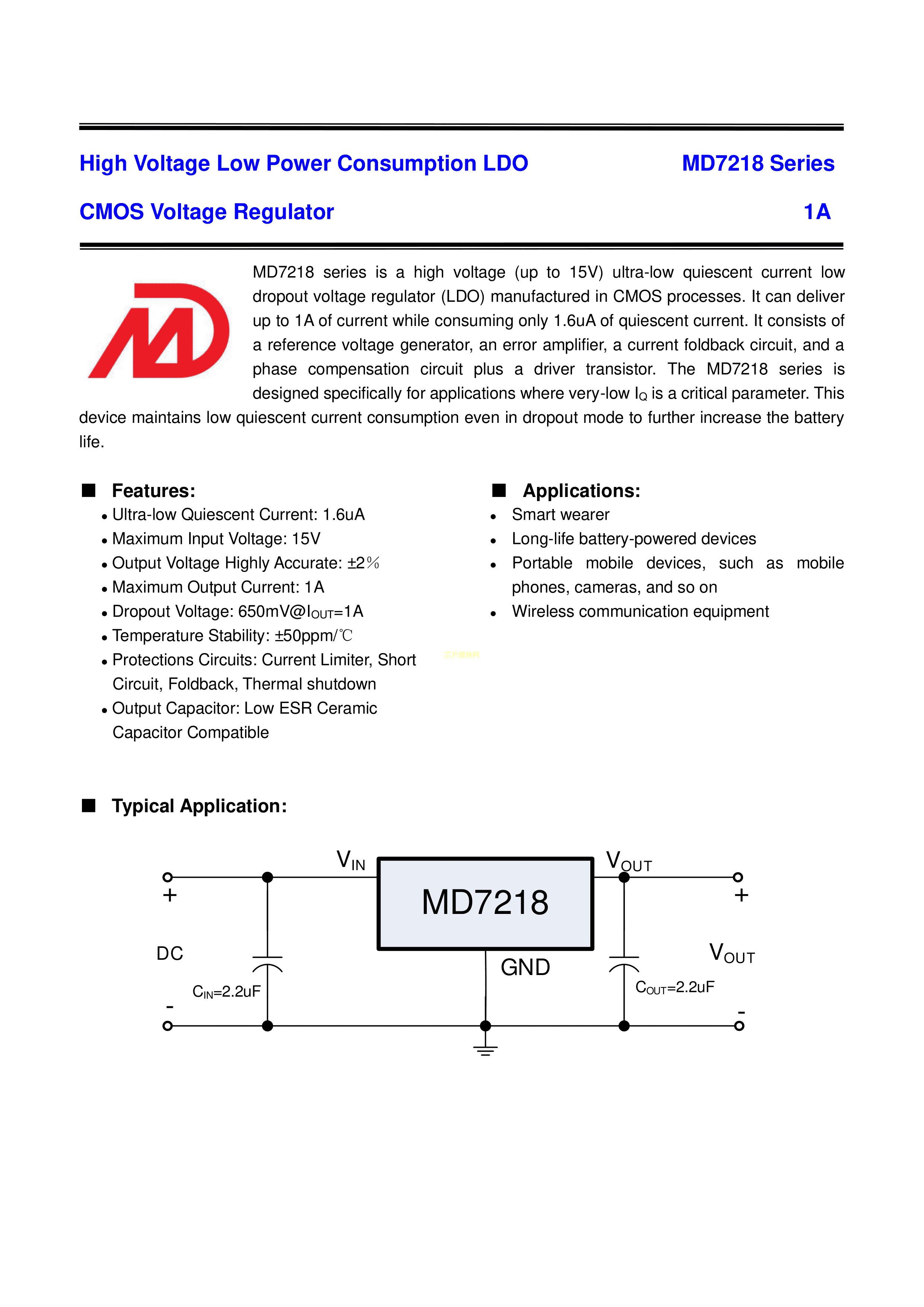 MD7218A40PA1数据手册SOT-89-3封装明达微PDF规格书,中英文下载