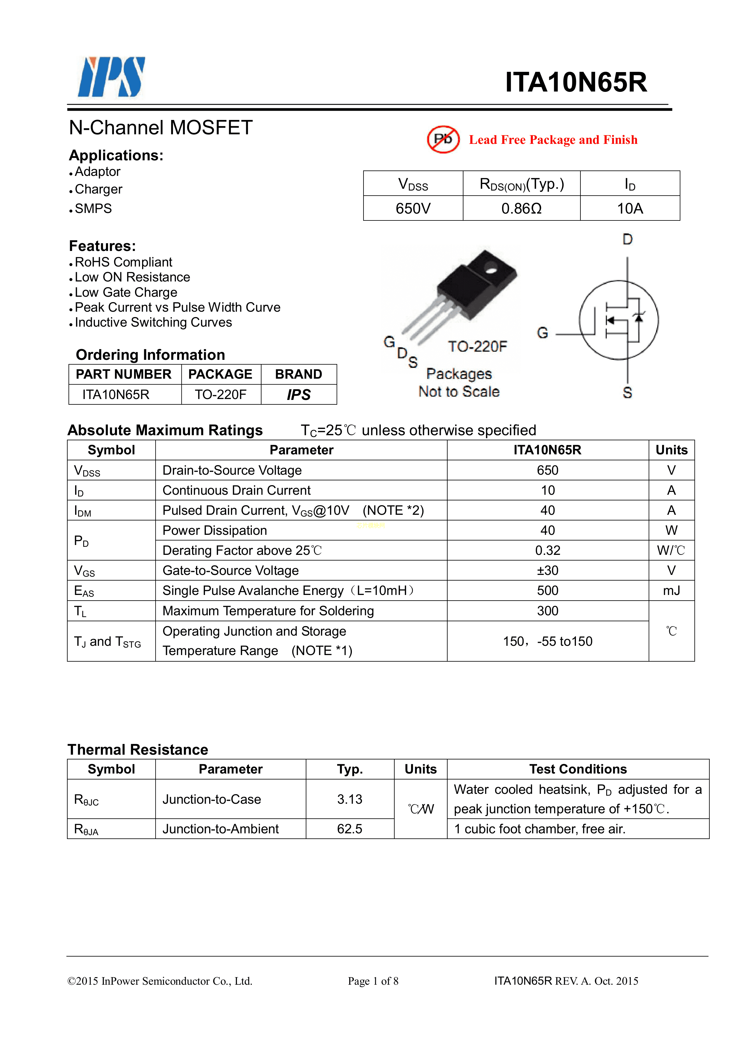 ITA10N65R数据手册TO-220F封装CRMICRO(华润微)PDF规格书,中英文下载