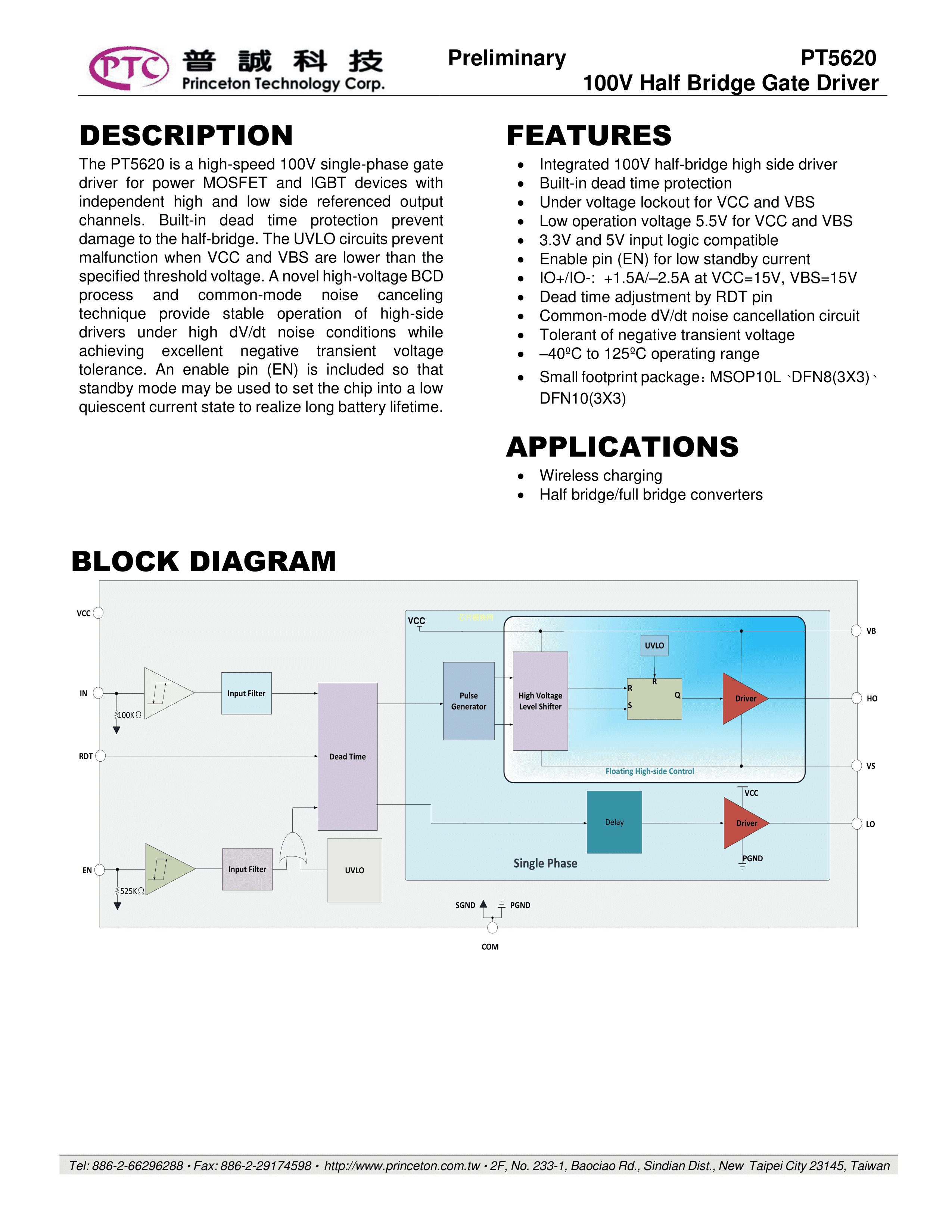 PT5620数据手册MSOP-10封装PTC(台湾普诚)PDF规格书,中英文下载