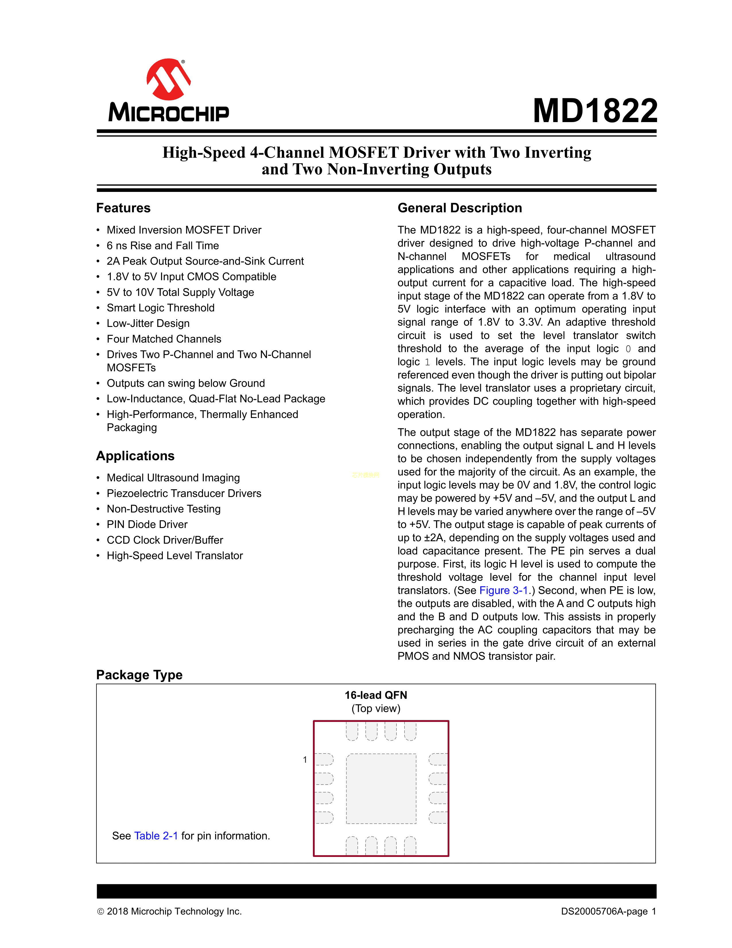 MD1822K6-G数据手册QFN-16封装MICROCHIP(美国微芯)PDF规格书,中英文下载