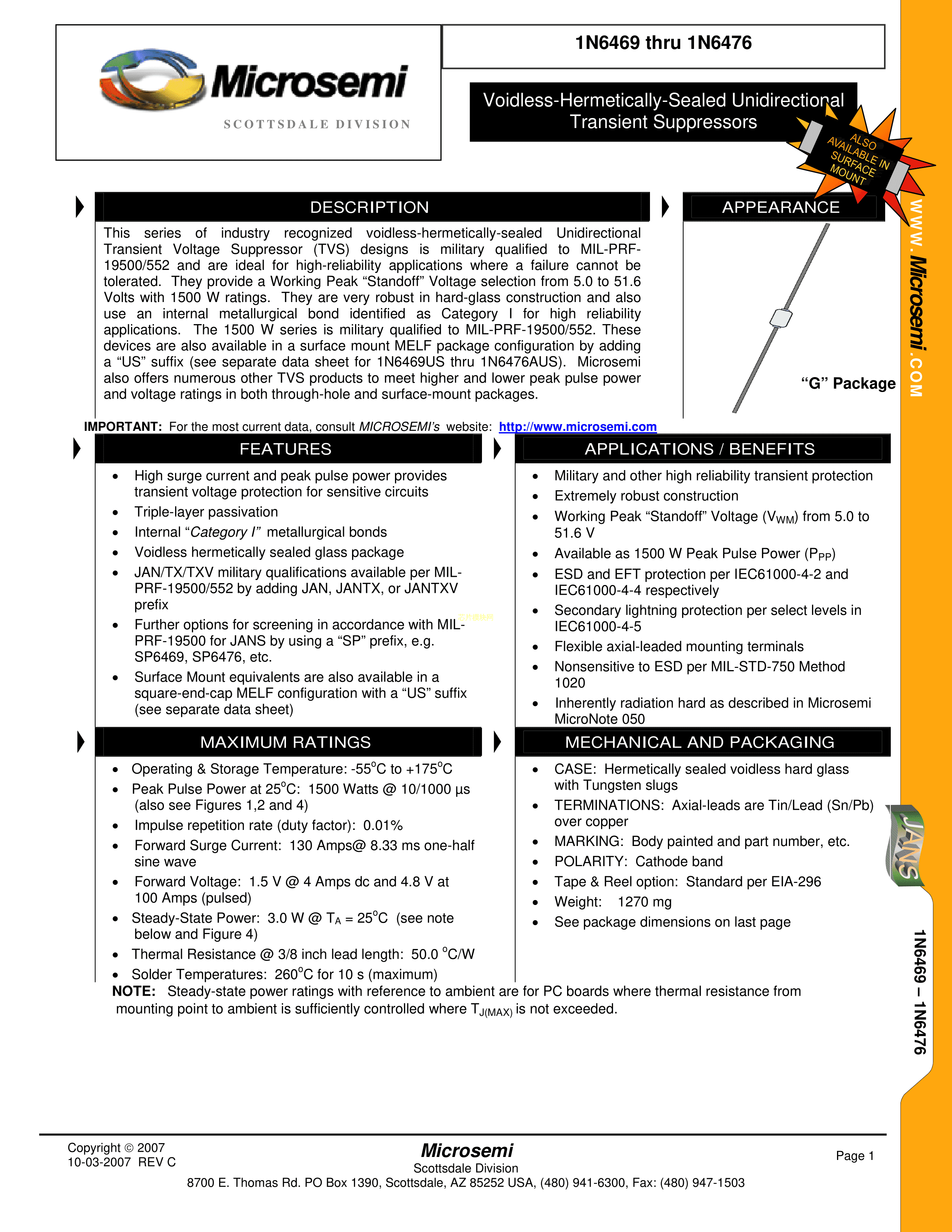 JAN1N6470数据手册Axial封装Microsemi(美高森美)PDF规格书,中英文下载