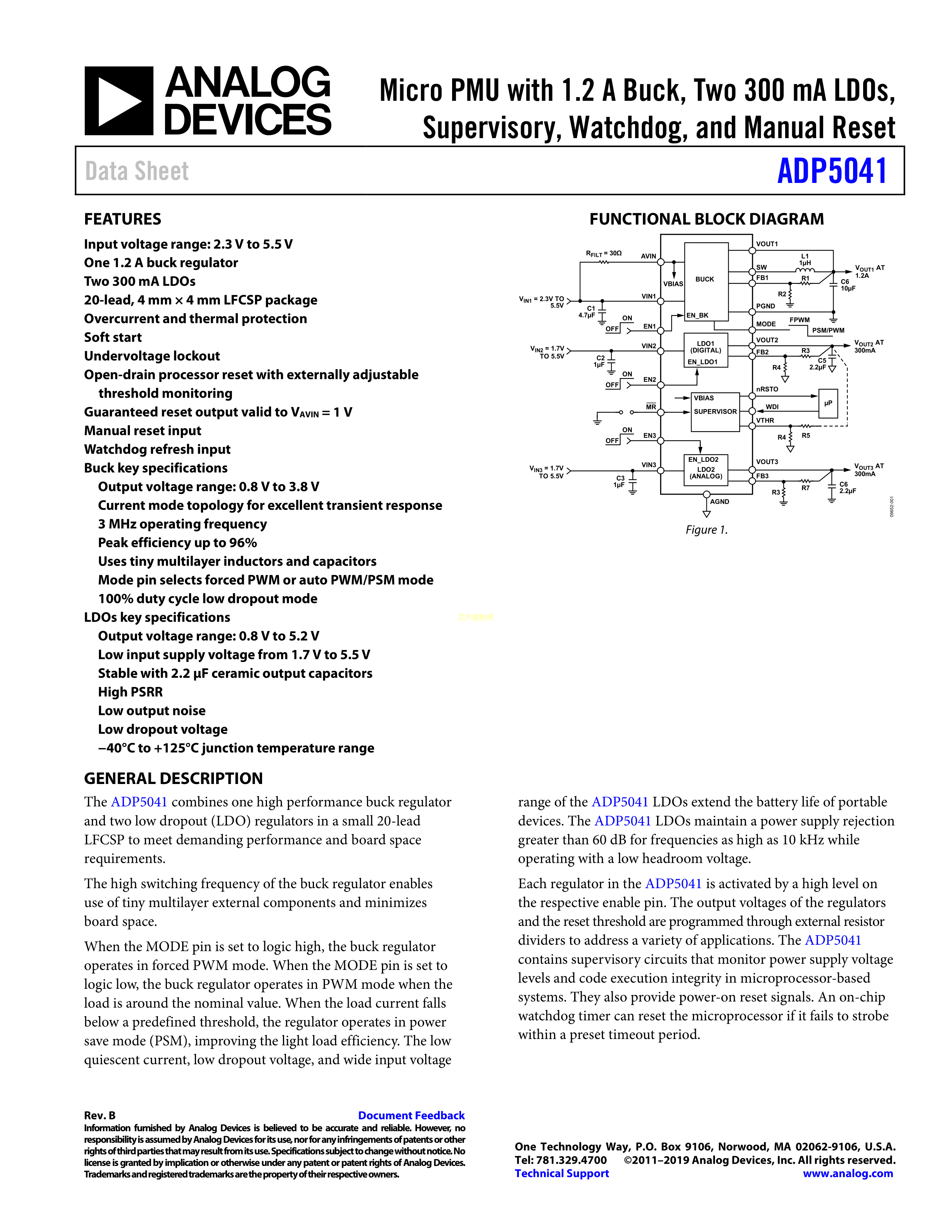 ADP5041ACPZ-1-R7数据手册LFCSP-20封装ADI(亚德诺)-LINEARPDF规格书,中英文下载