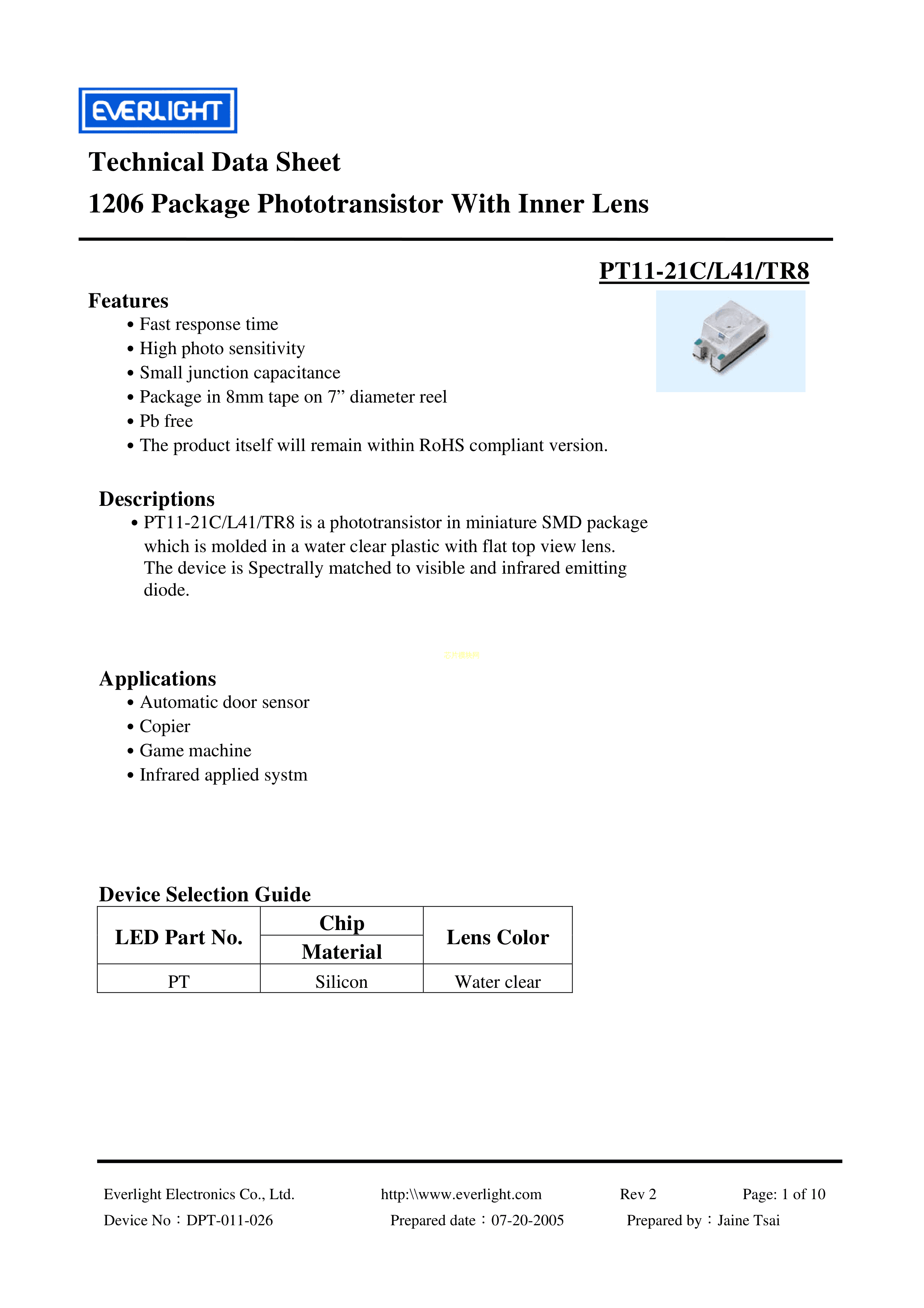 PT11-21C-L41-TR8数据手册1206封装EVERLIGHT(台湾亿光)PDF规格书,中英文下载