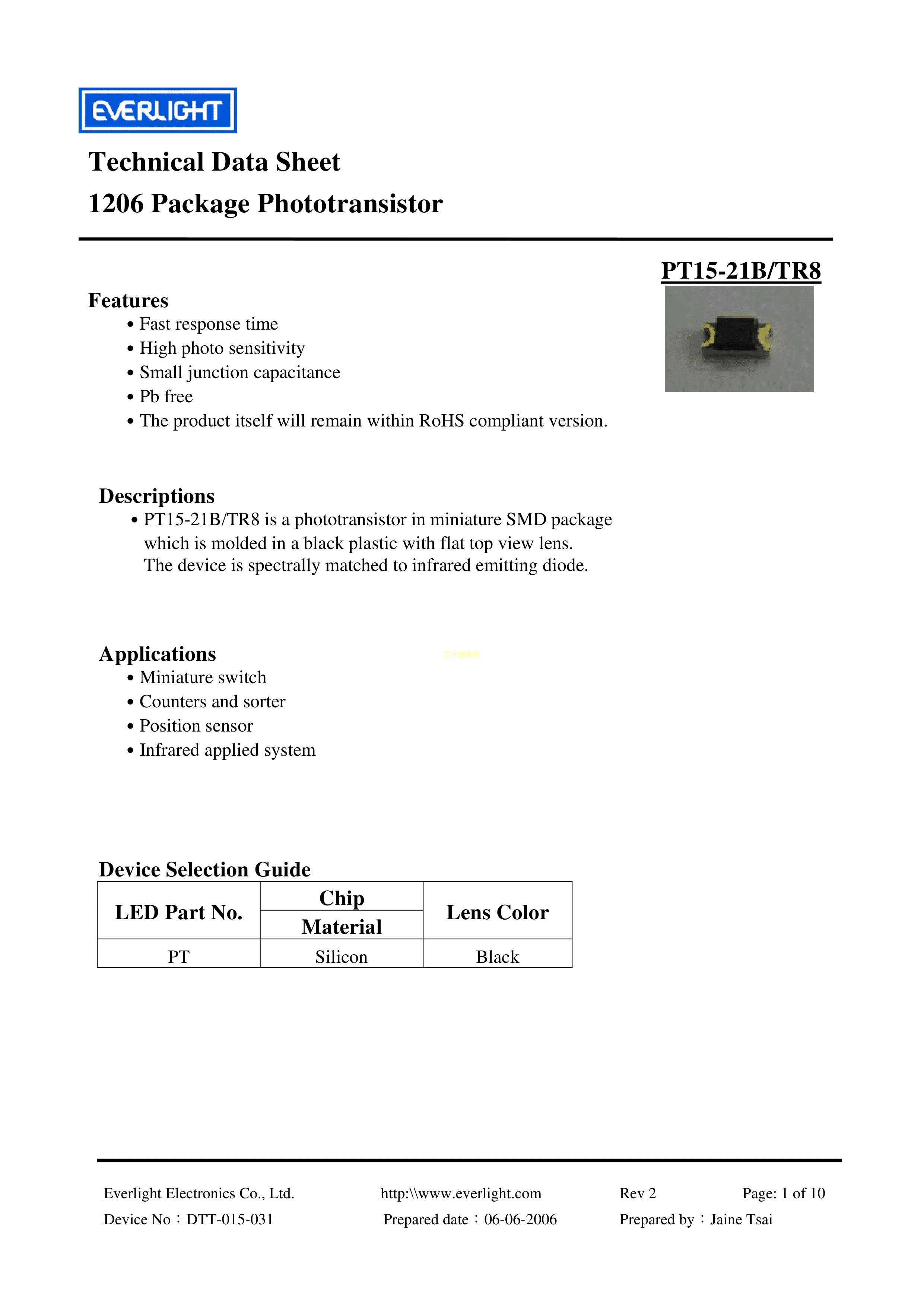 PT15-21B-TR8数据手册1206封装EVERLIGHT(台湾亿光)PDF规格书,中英文下载