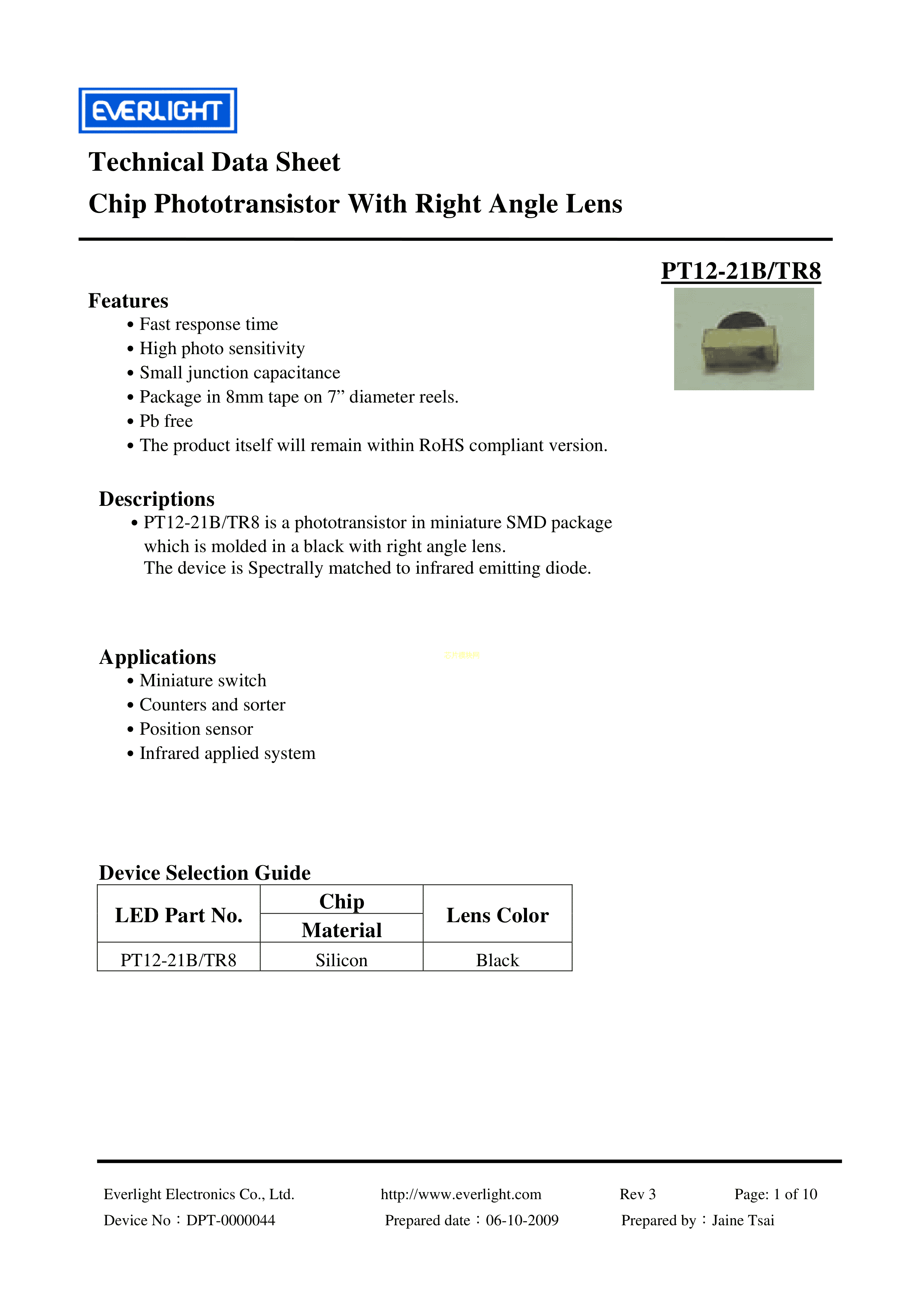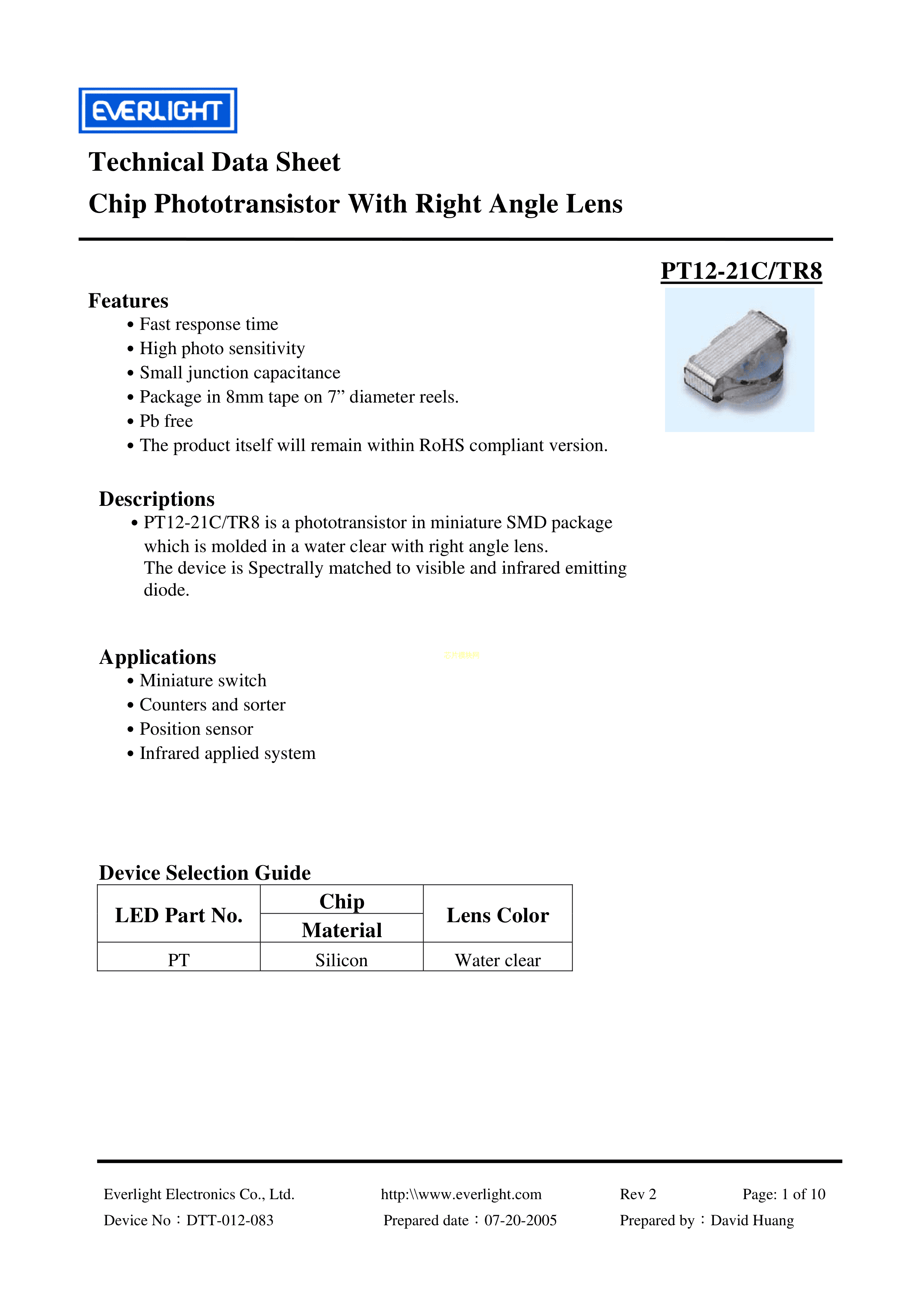 PT12-21C-TR8数据手册SMD封装EVERLIGHT(台湾亿光)PDF规格书,中英文下载