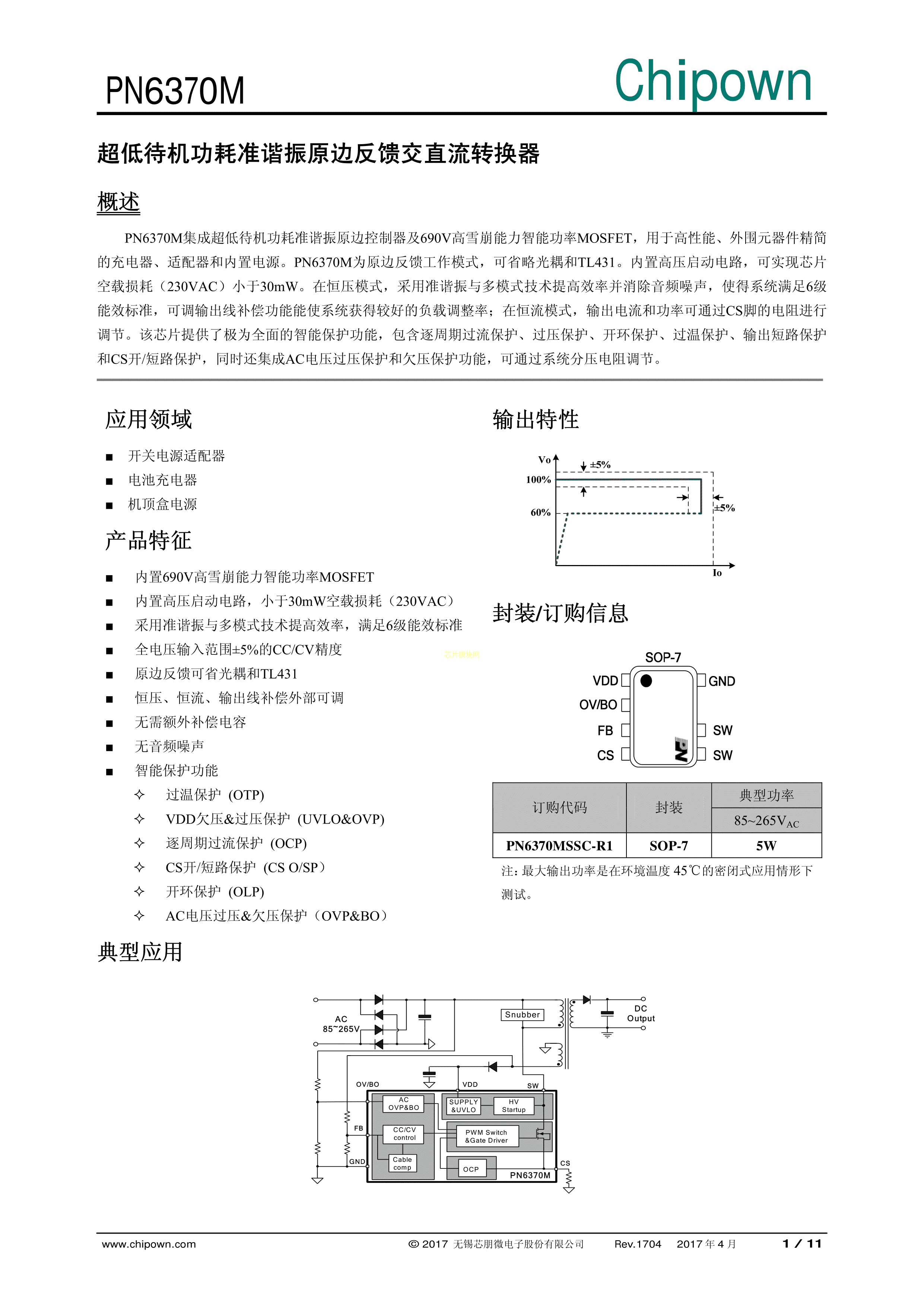 PN6370MSSC-R1B数据手册SOP-7封装chipown(芯朋微电子)PDF规格书,中英文下
