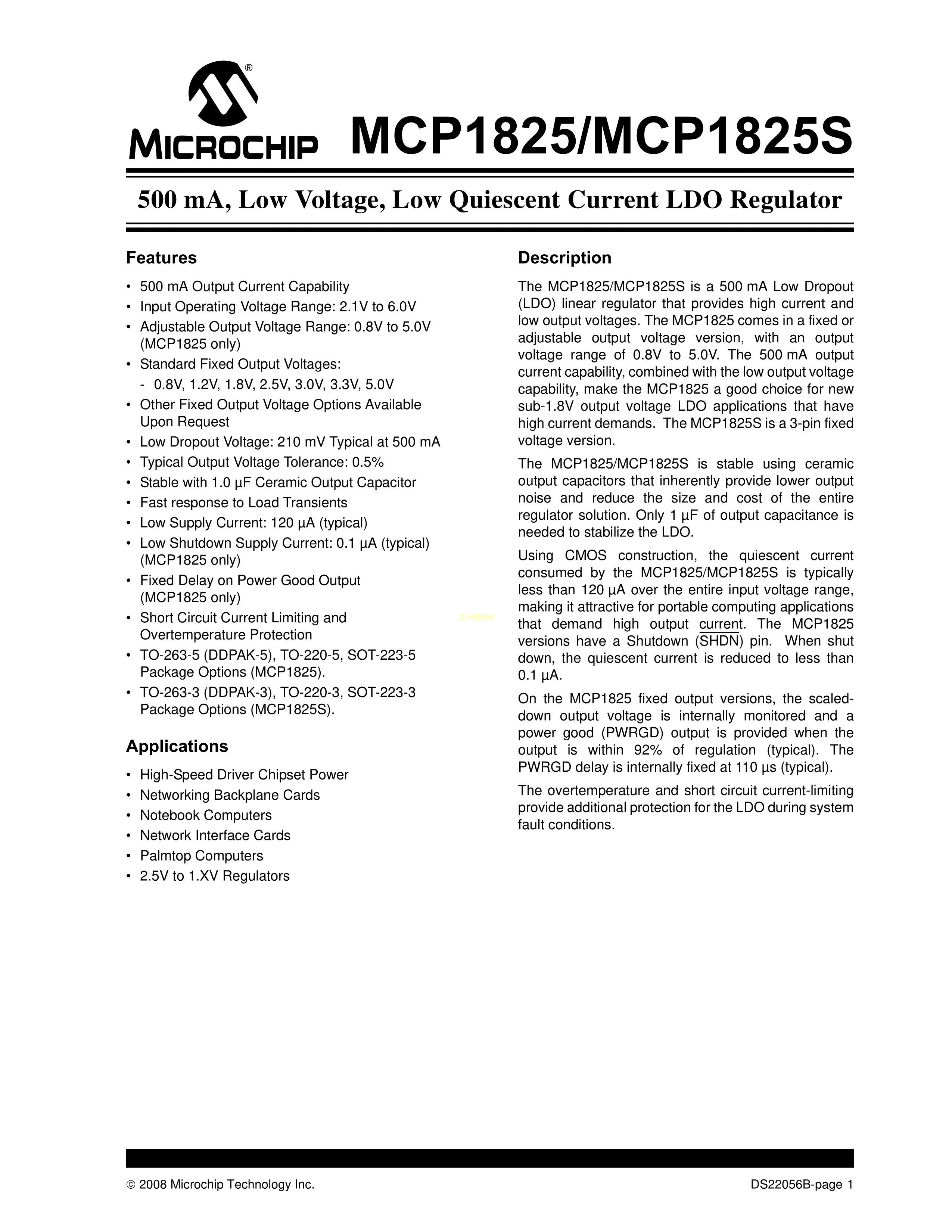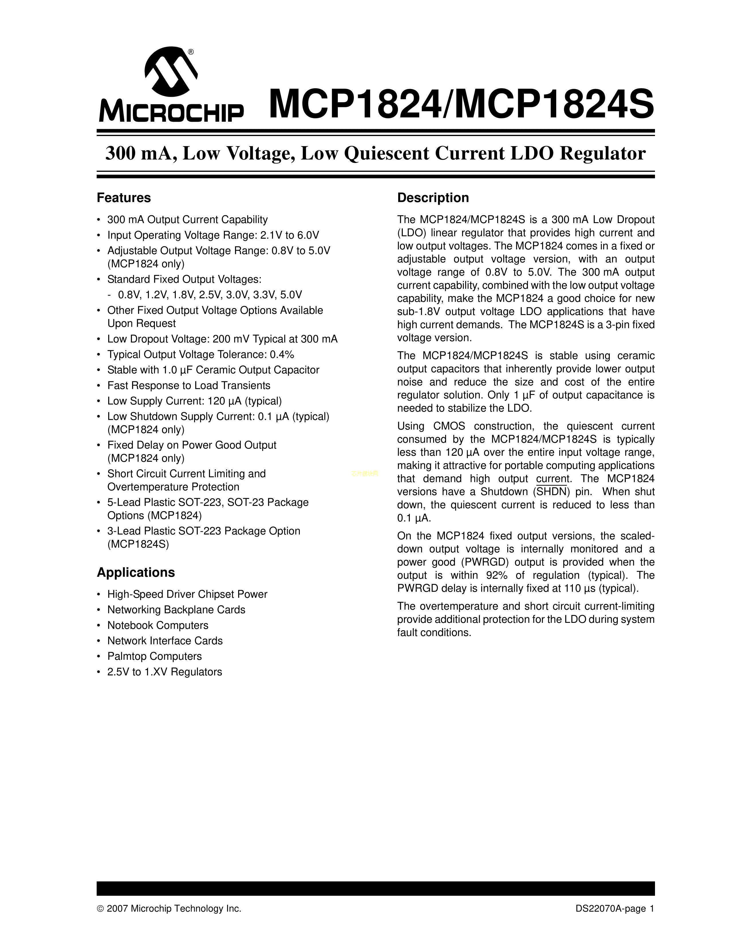 MCP1824T-ADJE-OT数据手册SOT-23-5封装MICROCHIP(美国微芯)PDF规格