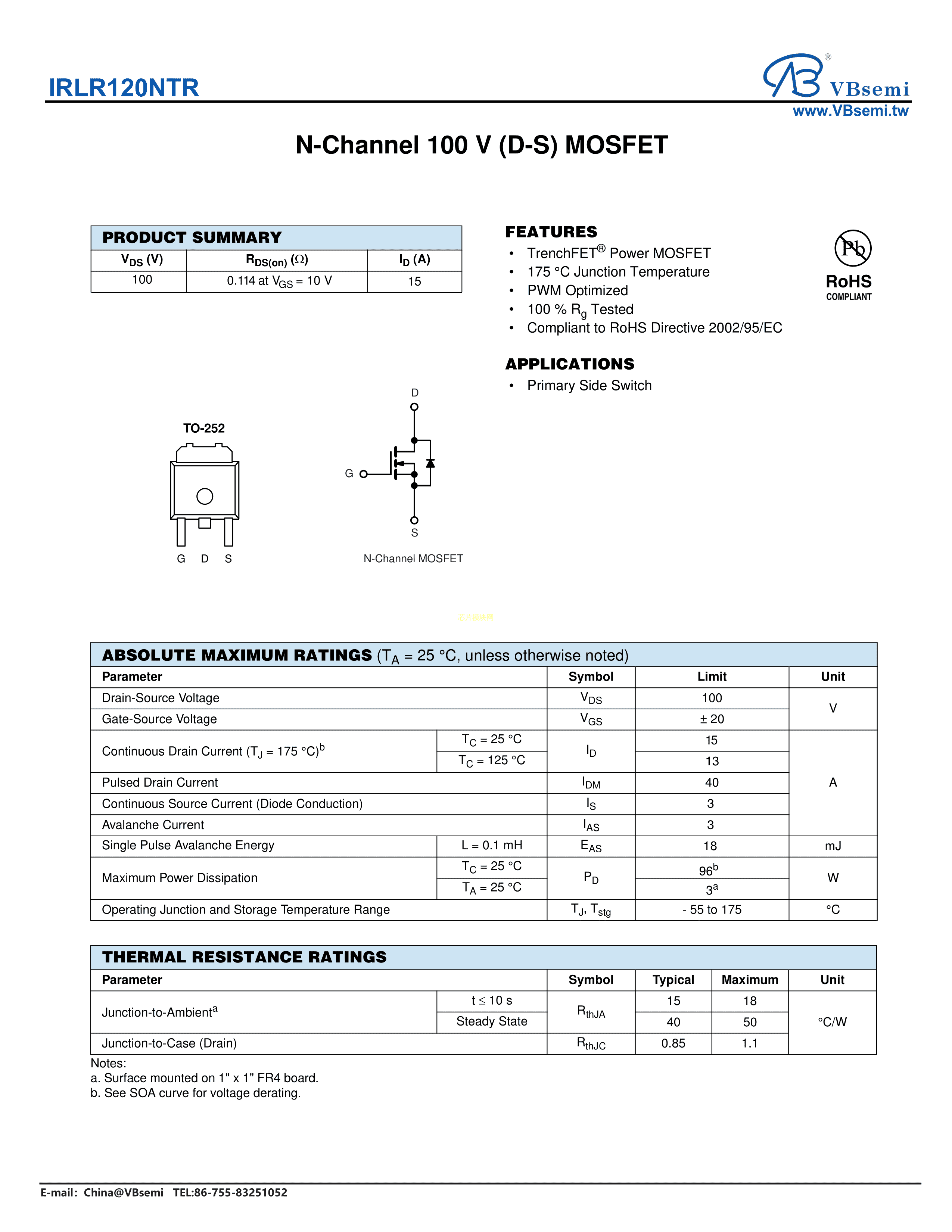 IRLR120NTR数据手册TO-252封装VBsemi(台湾微碧)PDF规格书,中英文下载