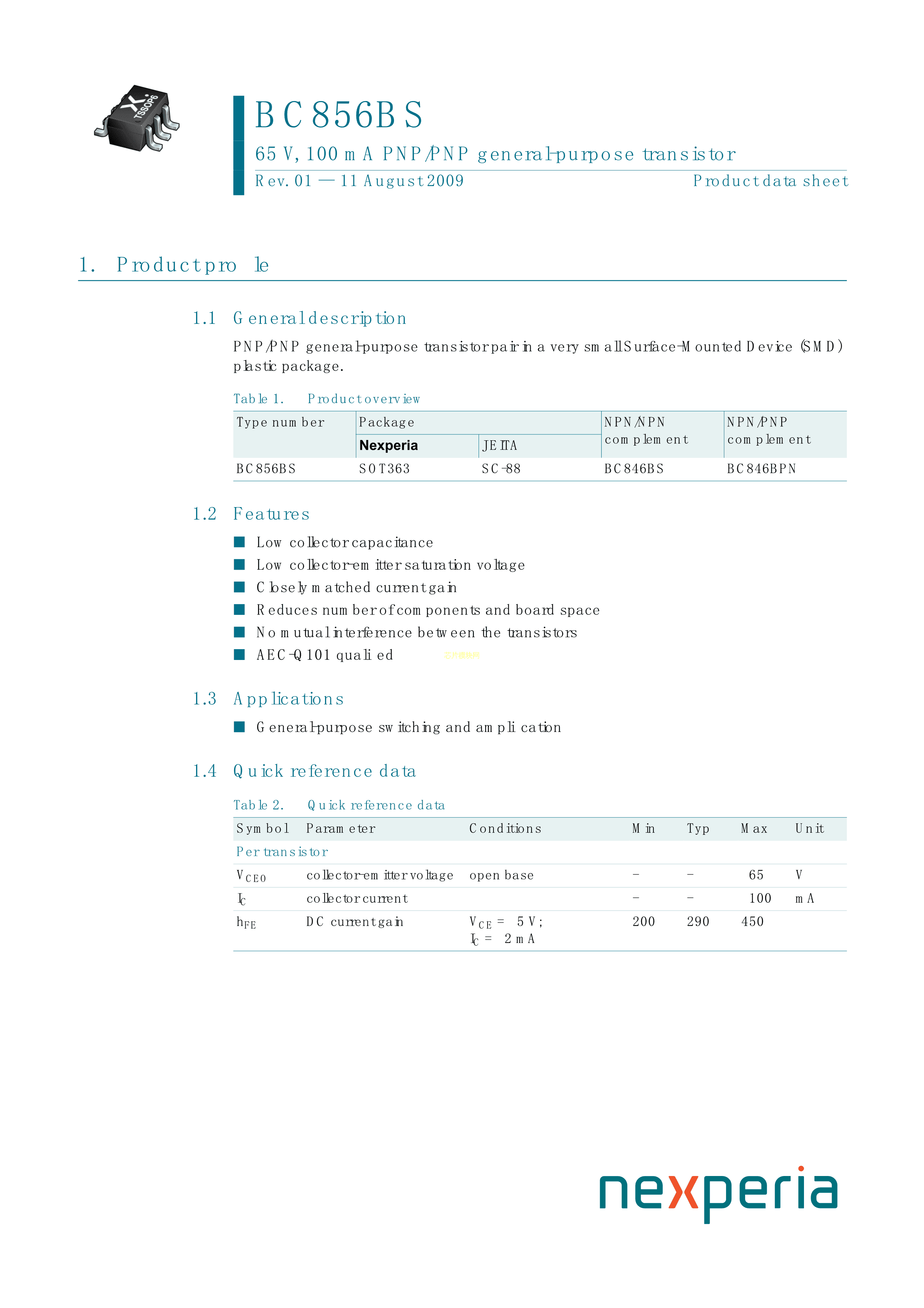 BC856BS115数据手册TSSOP-6封装Nexperia(安世)PDF规格书,中英文下载