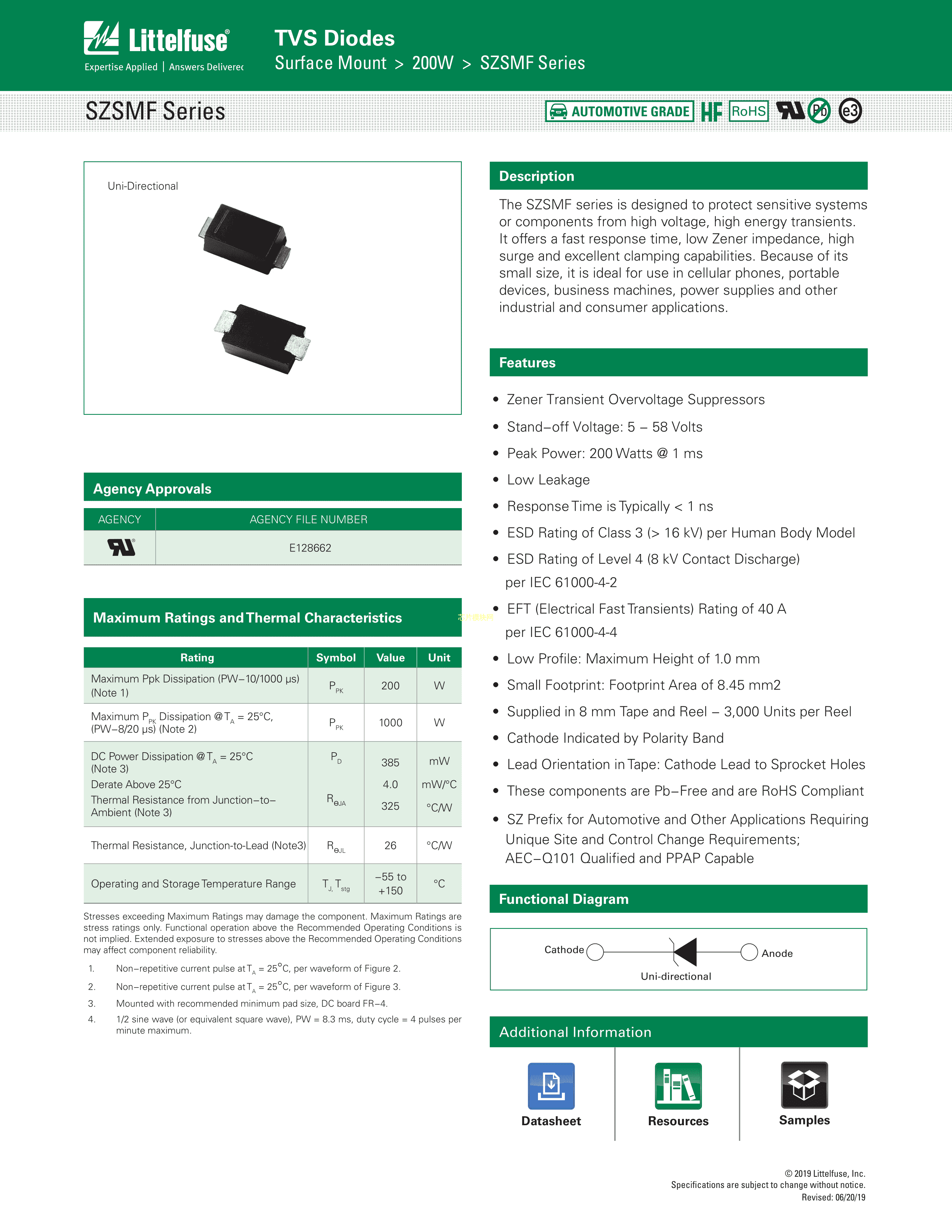 SZSMF33AT1G数据手册SOD-123FL封装Littelfuse(美国力特)PDF规格书,中