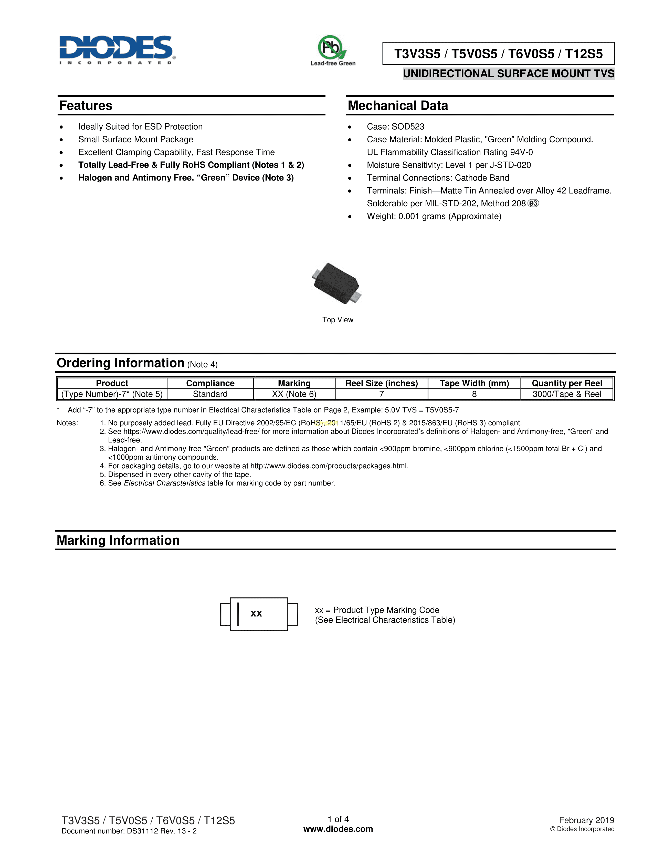 T6V0S5-7数据手册SOD-523封装DIODES(美台)PDF规格书,中英文下载