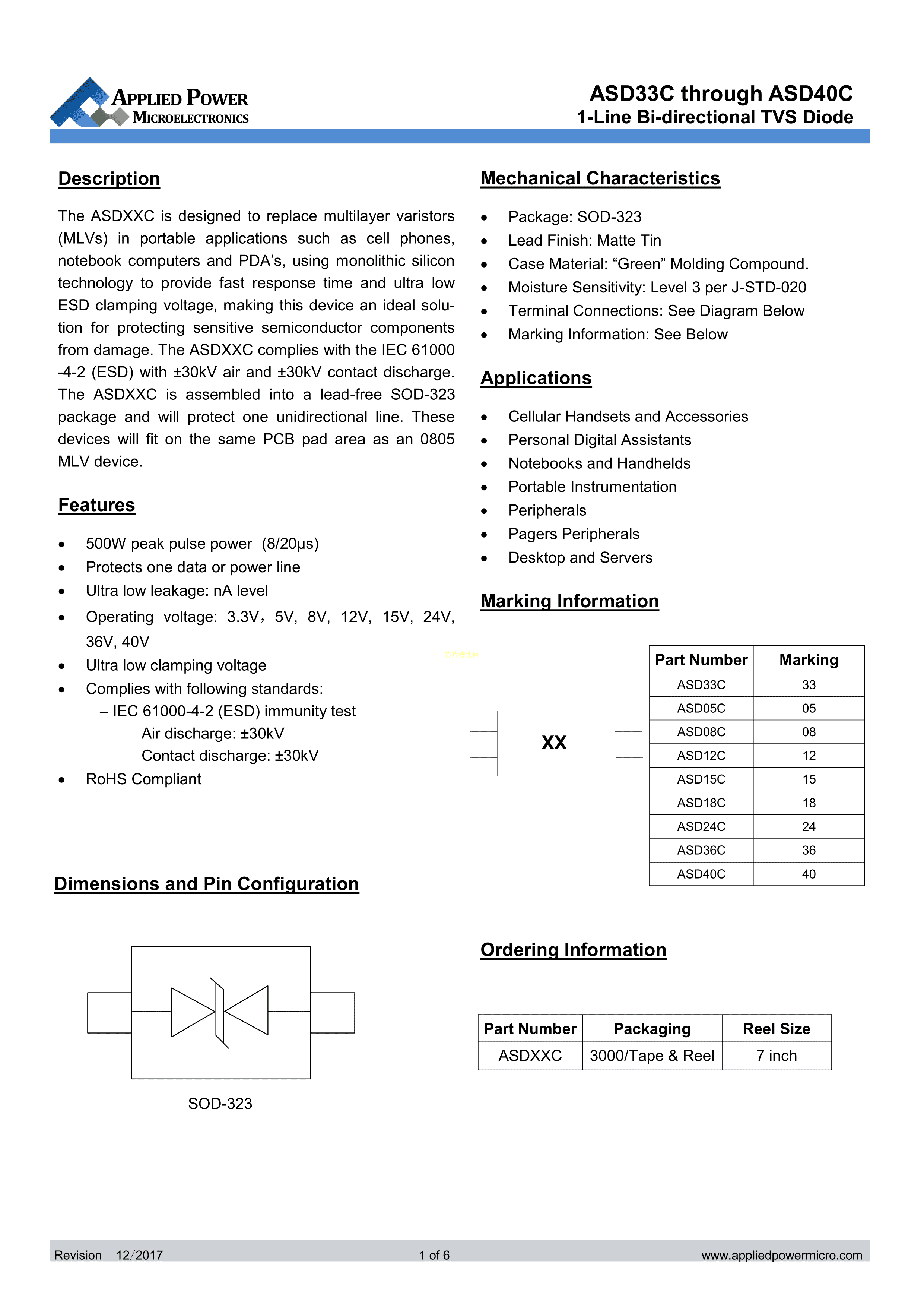 ASD33C数据手册SOD-323封装Applied Power(应能微)PDF规格书,中英文下载