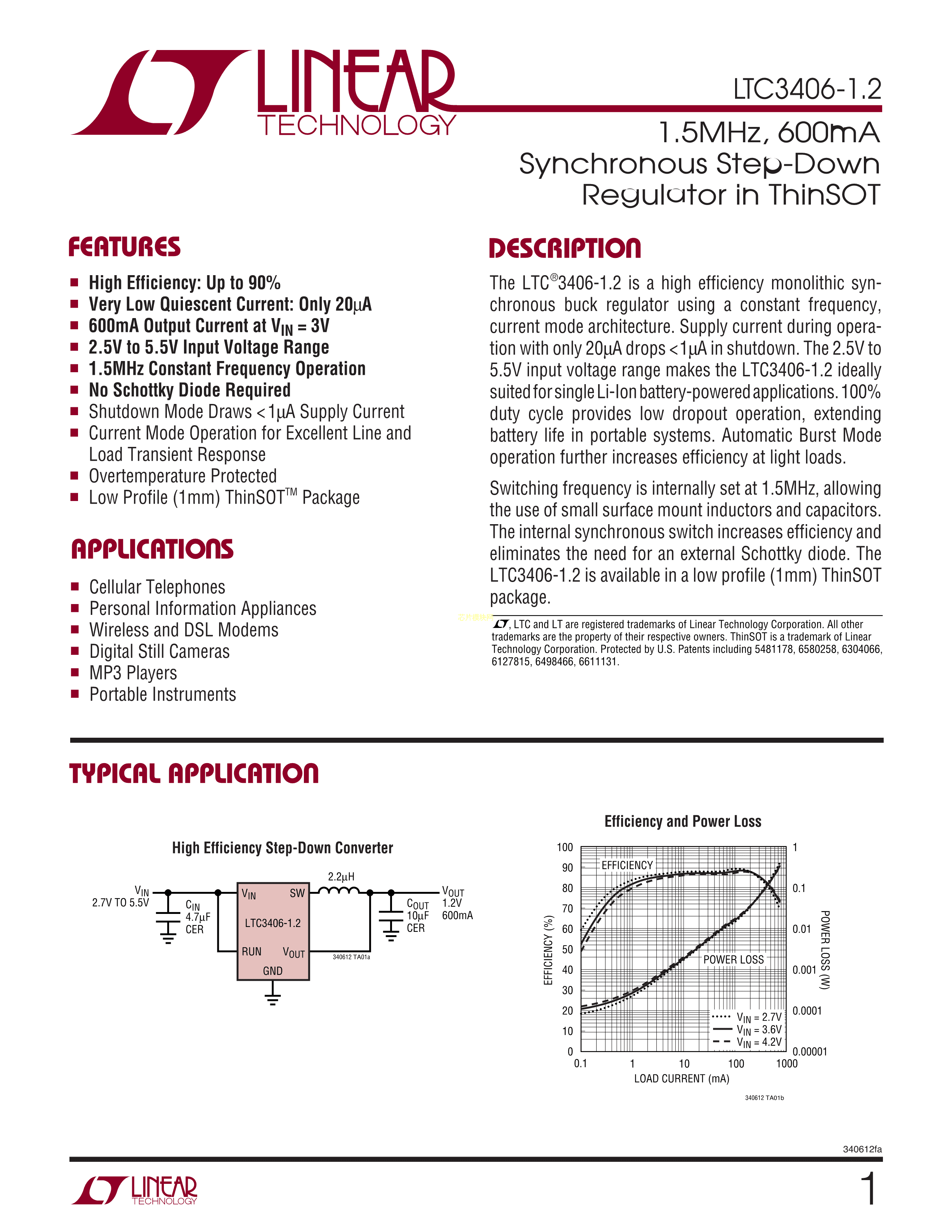 LTC3406ES5-1.2#TRMPBF数据手册TSOT-23-5封装ADI(亚德诺)-LINEA