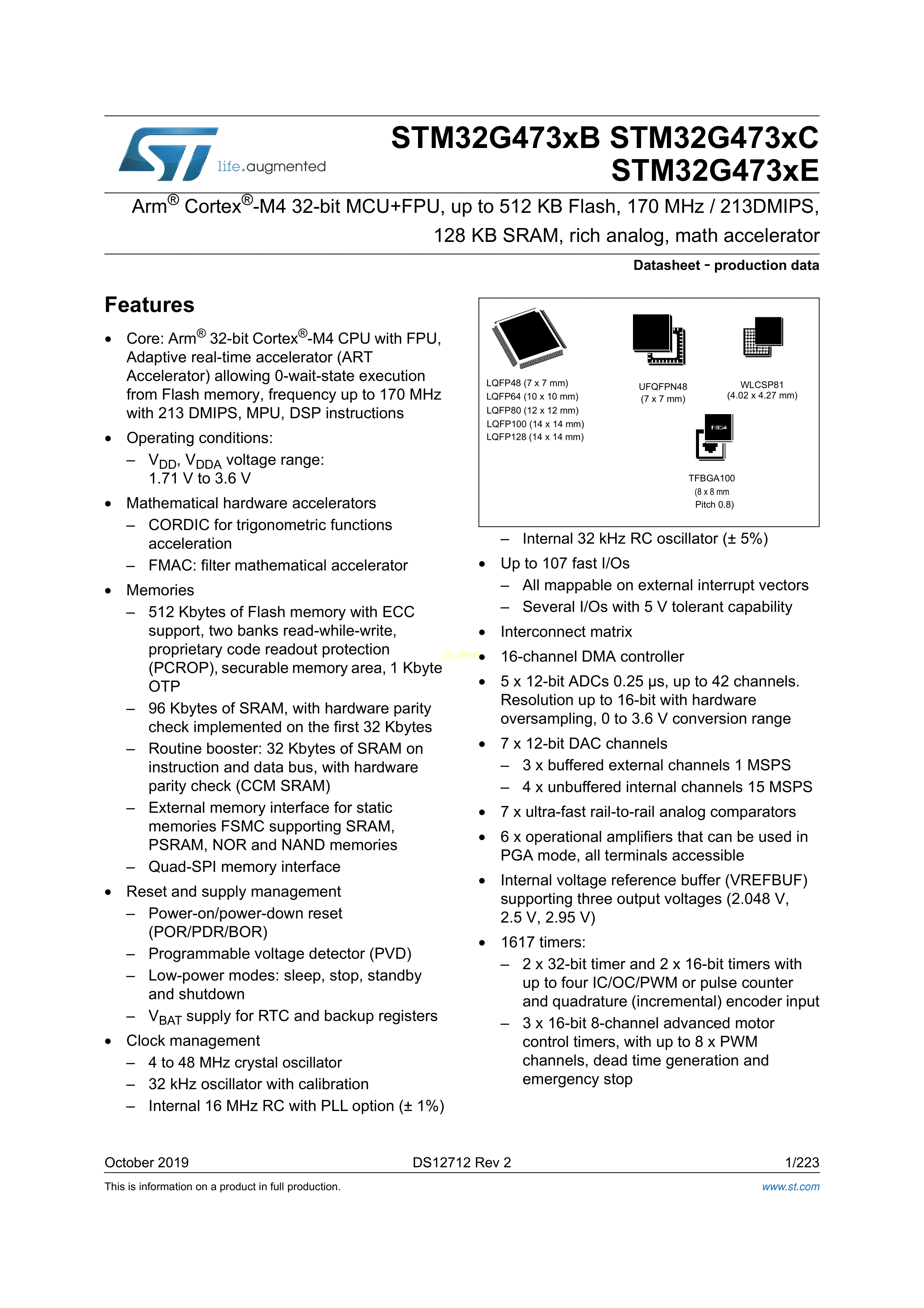 STM32G473MET6数据手册-封装ST(意法半导体)PDF规格书,中英文下载