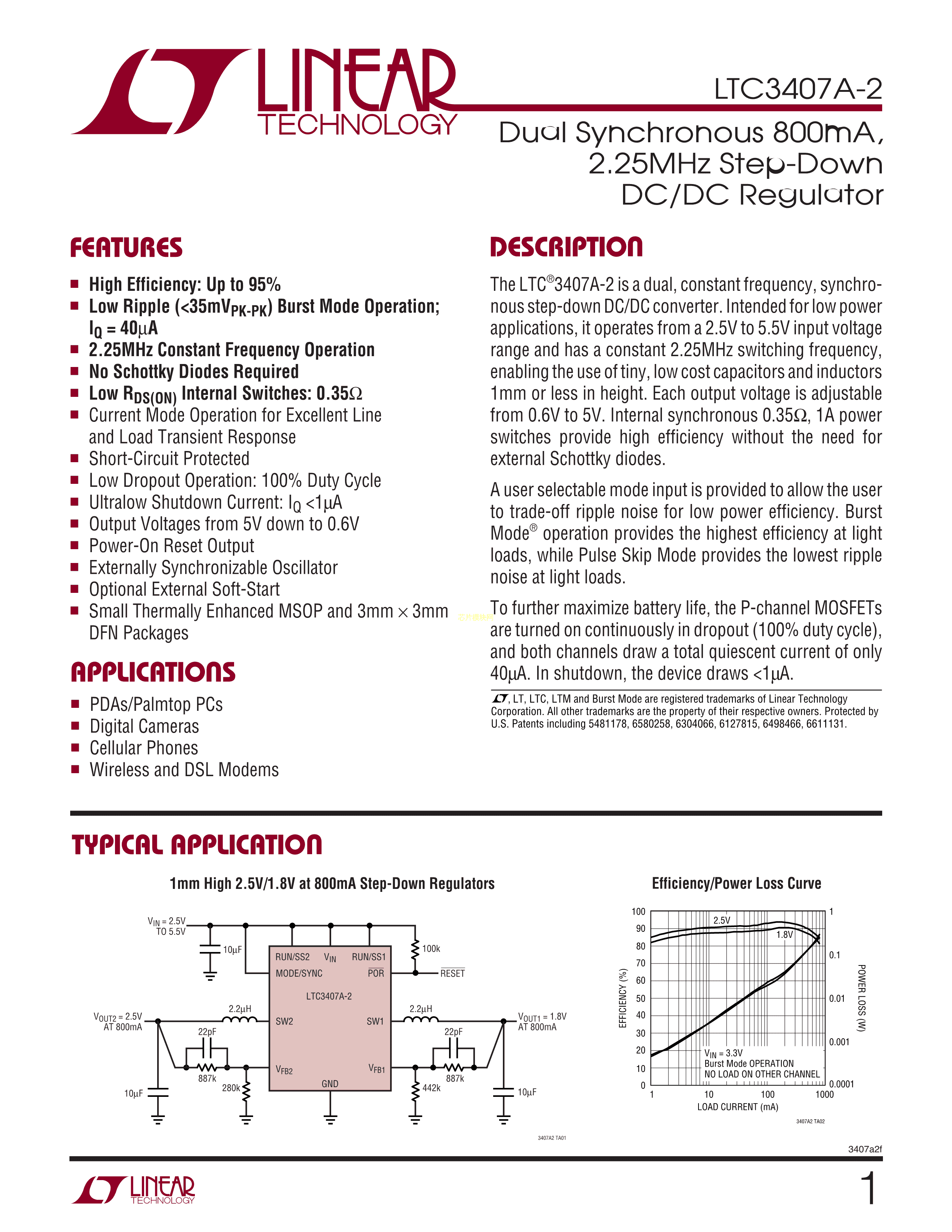 LTC3407AEDD-2#TRPBF数据手册DFN-10封装ADI(亚德诺)-LINEARPDF规