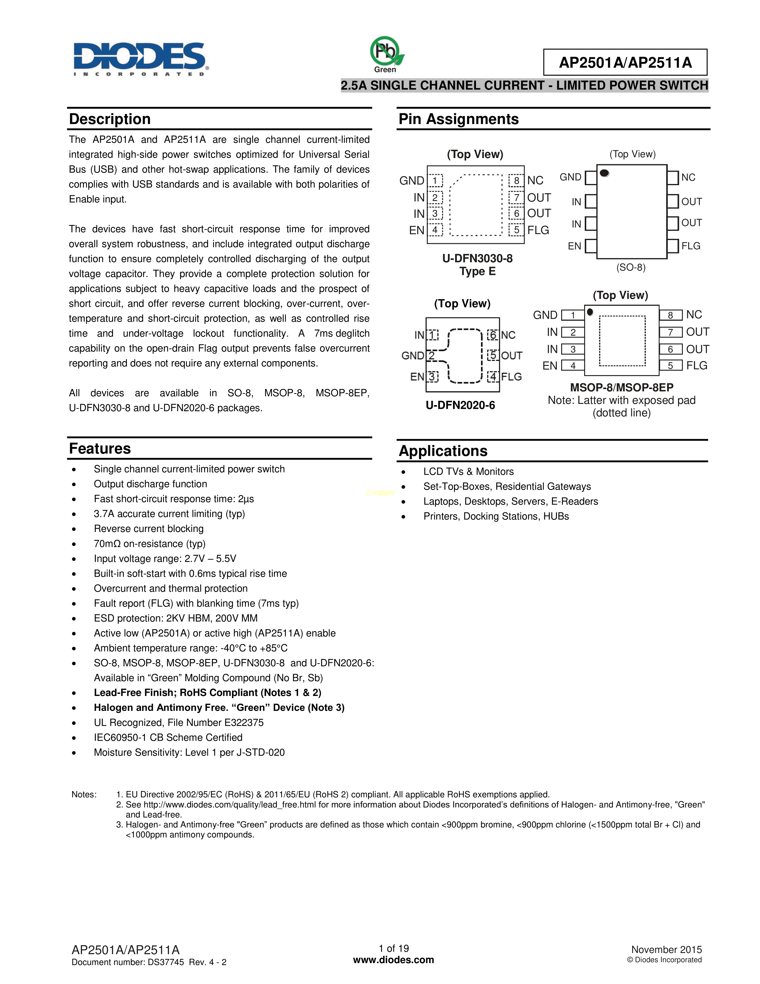AP2511ASN-7数据手册U-DFN2020-6封装DIODES(美台)PDF规格书,中英文下载