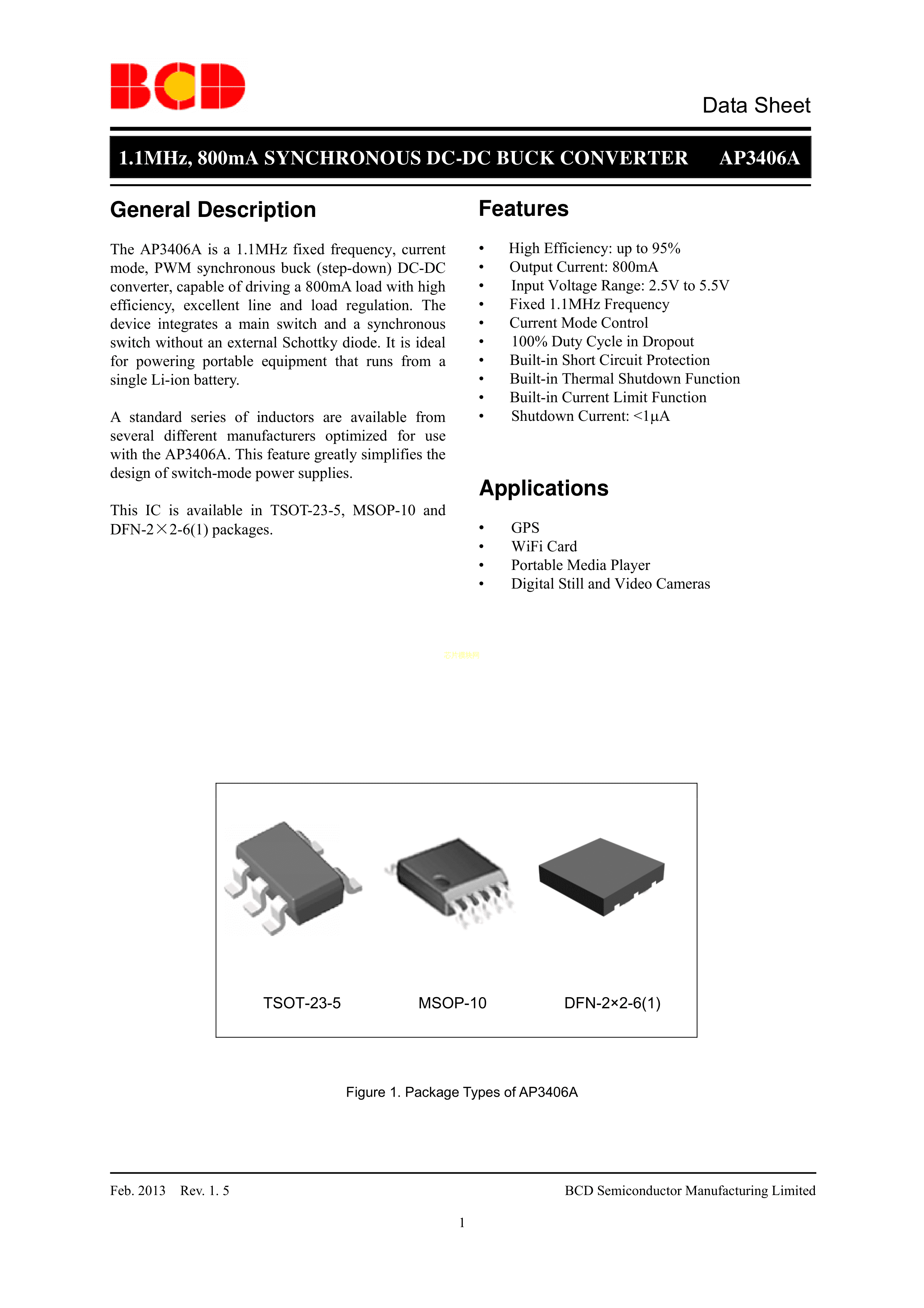 AP3406AKT-ADJTRG1数据手册TSOT-23-5封装DIODES(美台)PDF规格书,中