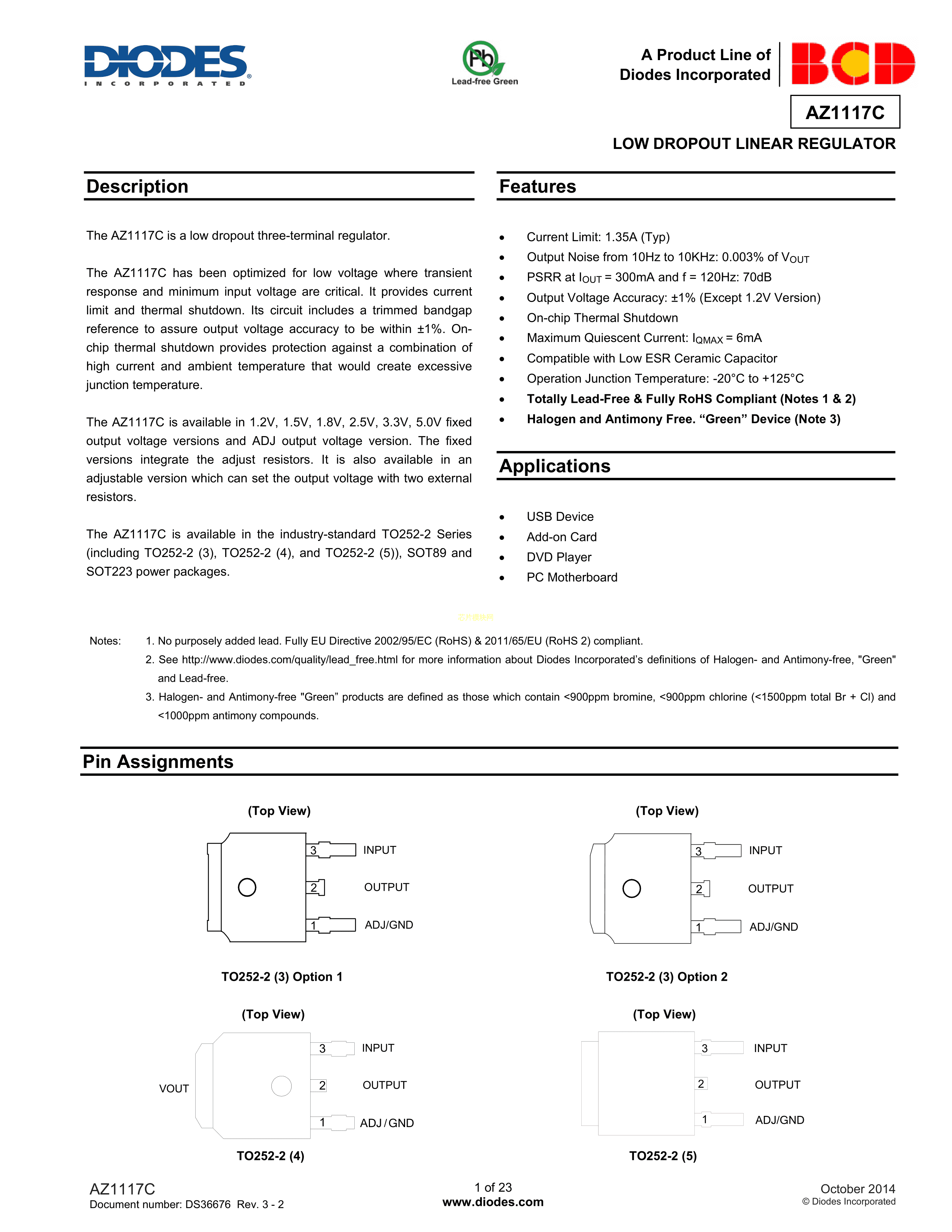 AZ1117CR2-3.3TRG1数据手册SOT-89封装DIODES(美台)PDF规格书,中英文下