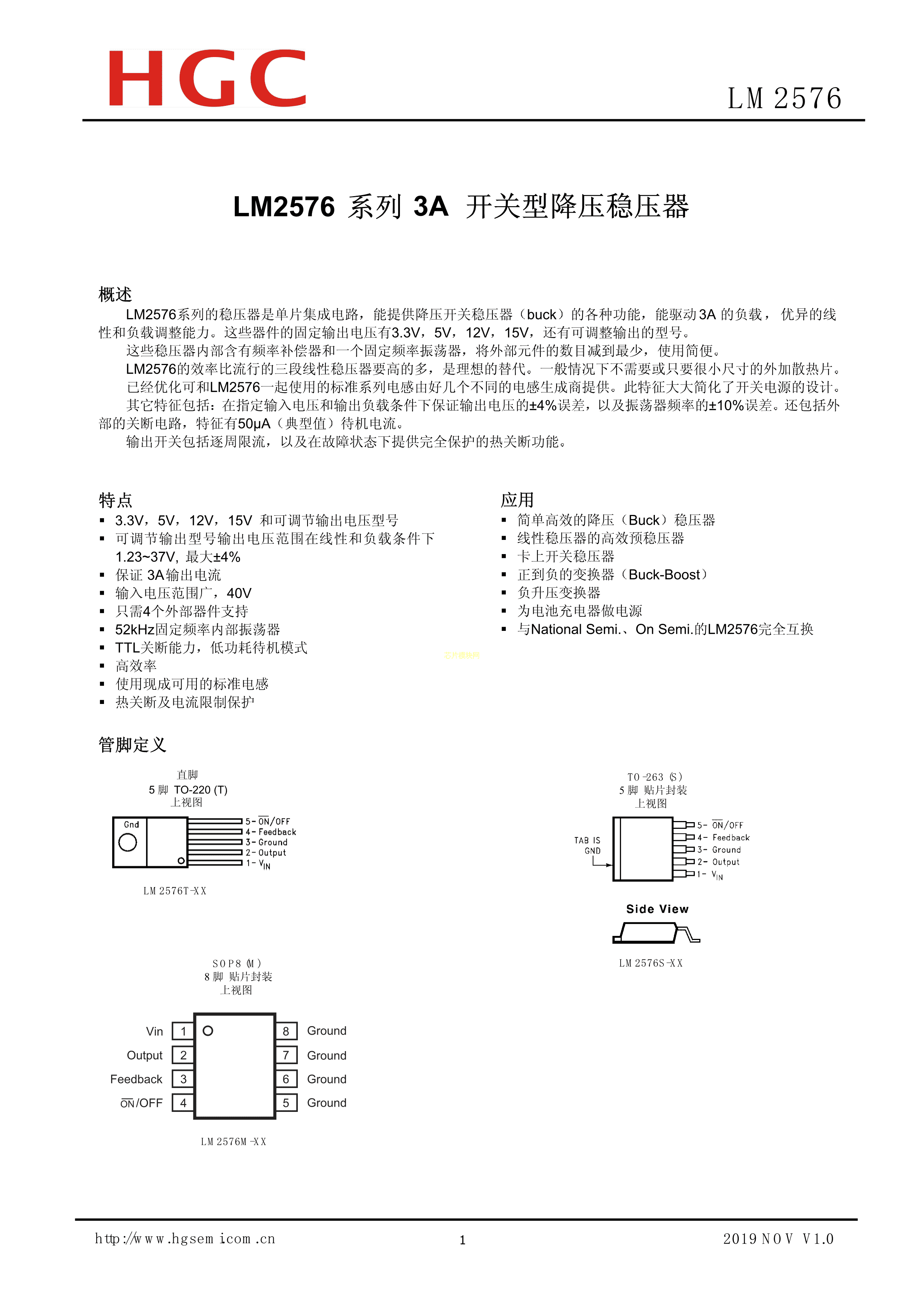 LM2576T-5.0数据手册TO-220封装HGC(华冠)PDF规格书,中英文下载
