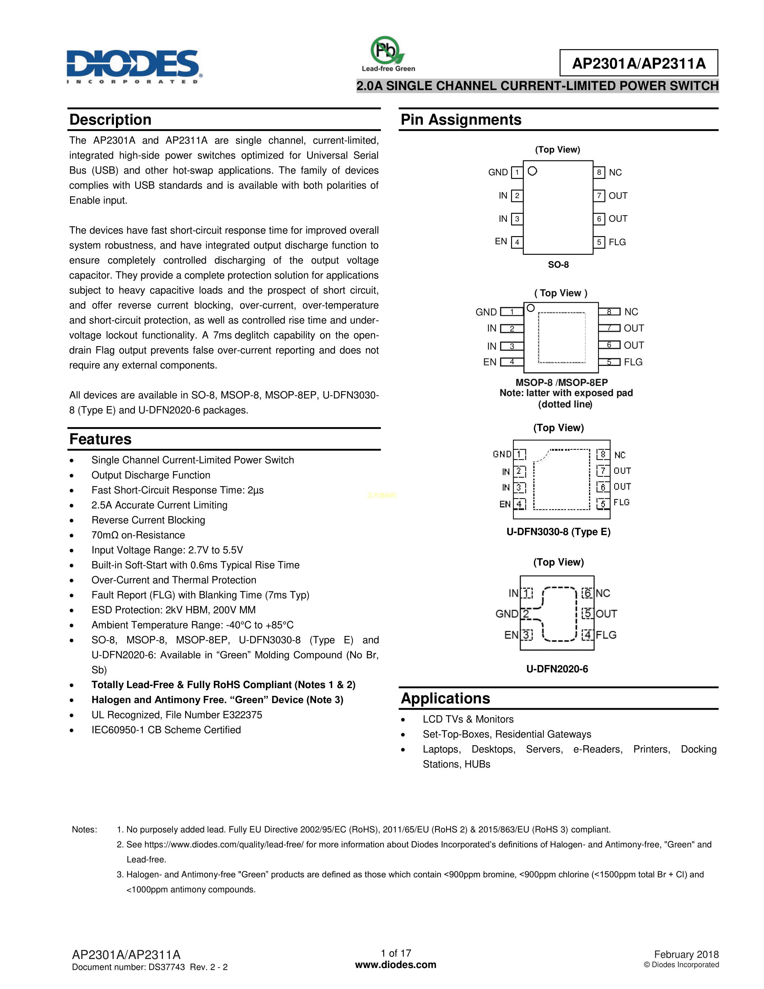 AP2311ASN-7数据手册U-DFN2020-6封装DIODES(美台)PDF规格书,中英文下载