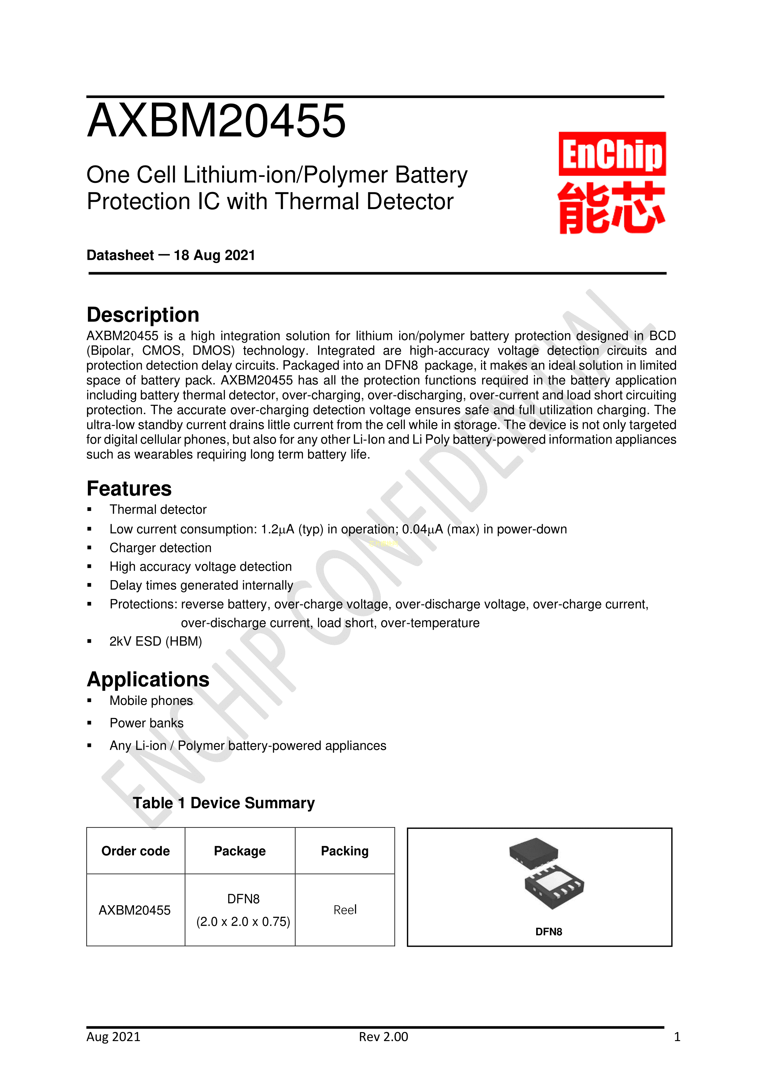 AXBM20455数据手册DFN-8封装EnChip(能芯)PDF规格书,中英文下载