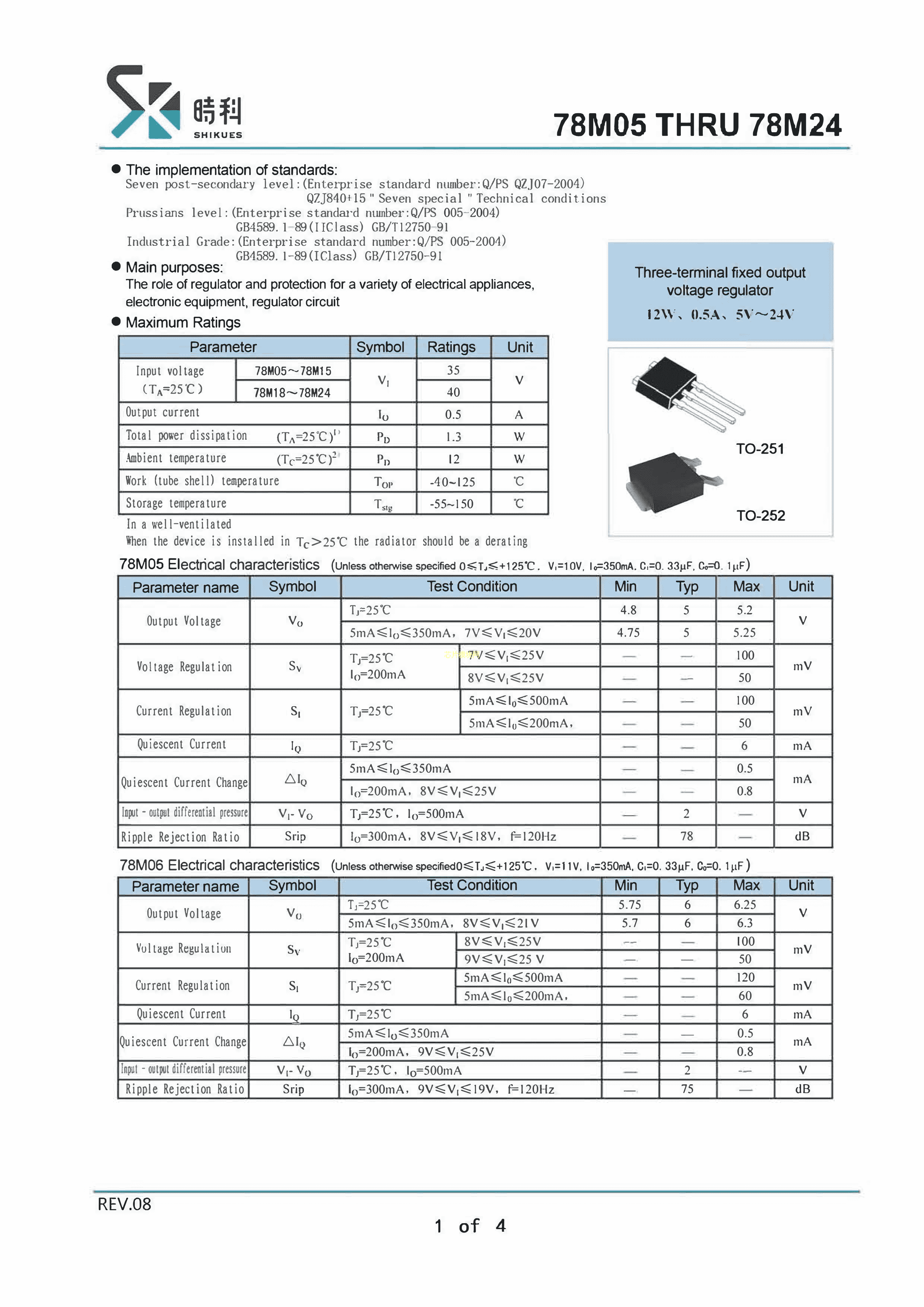 78M15数据手册TO-252封装SHIKUES(时科)PDF规格书,中英文下载