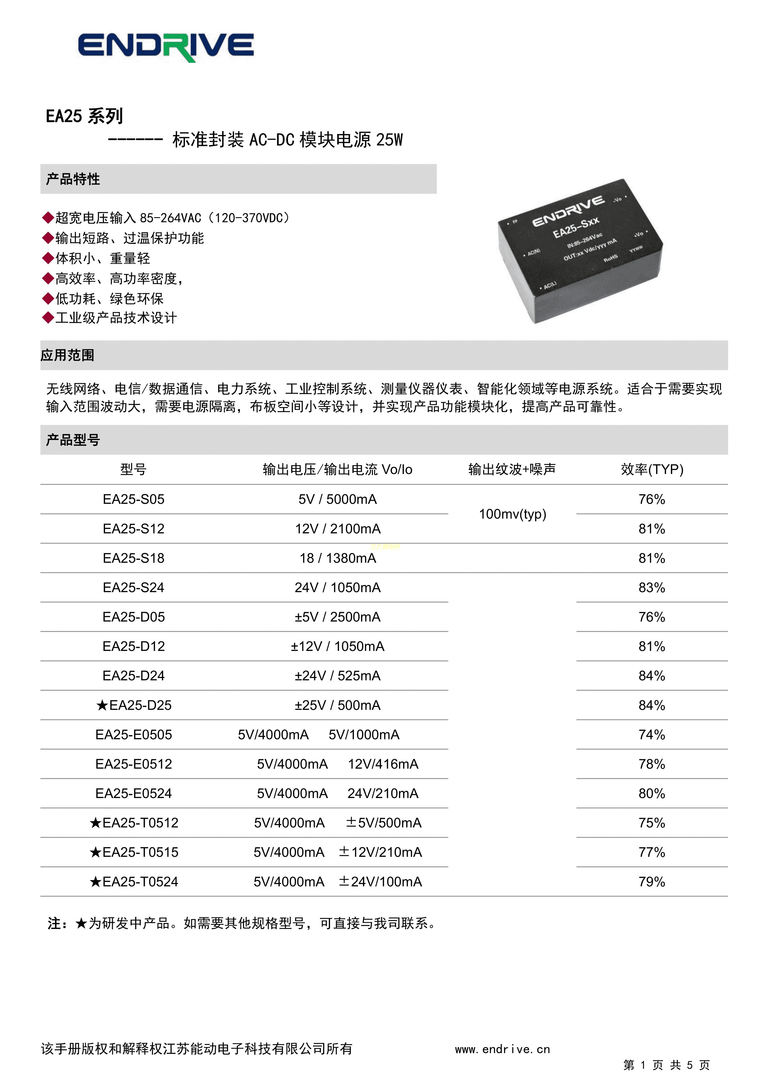 EA25-S18数据手册插件封装ENDRIVE(江苏能动)PDF规格书,中英文下载