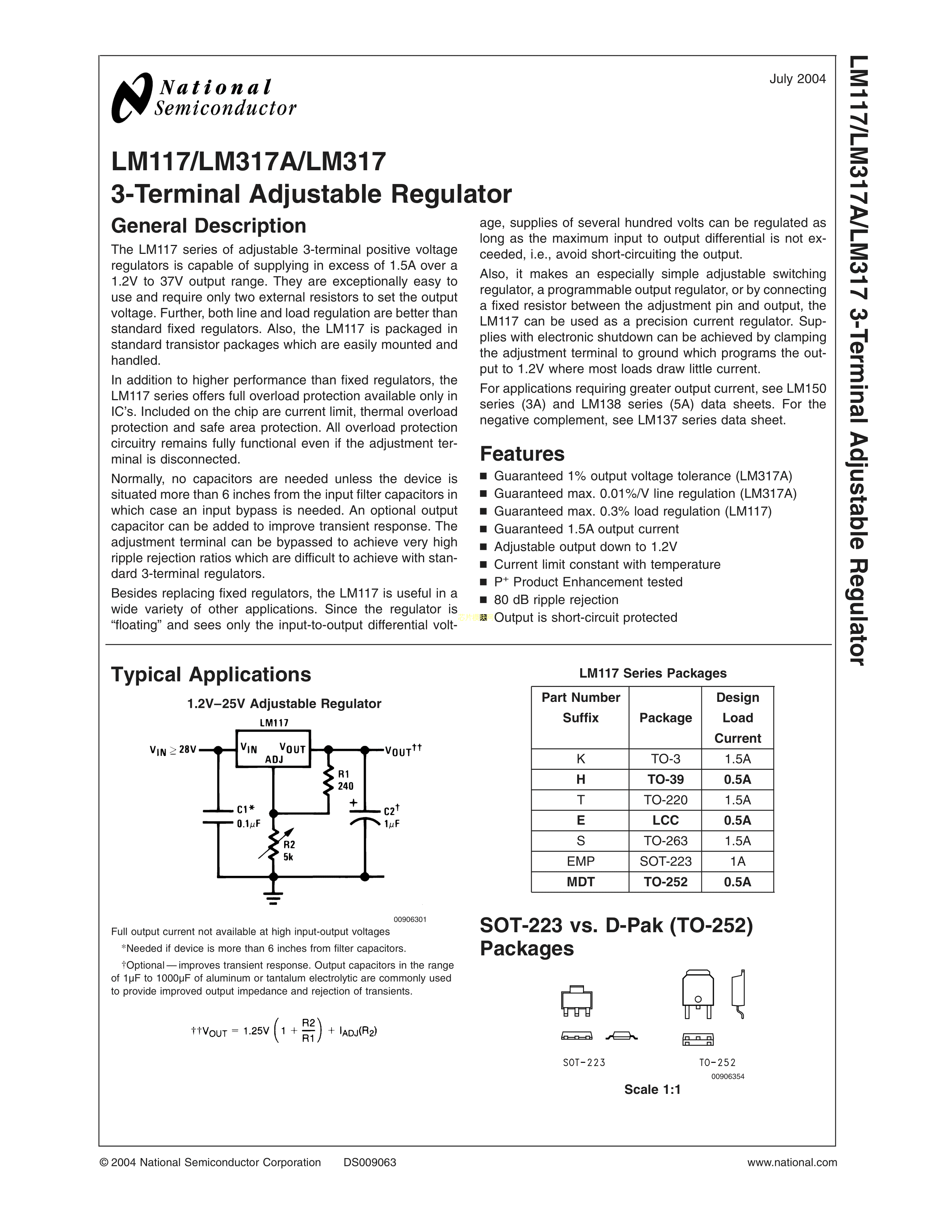 LM317AT数据手册TO-220(TO-220-3)封装TI(德州仪器)PDF规格书,中英文下载