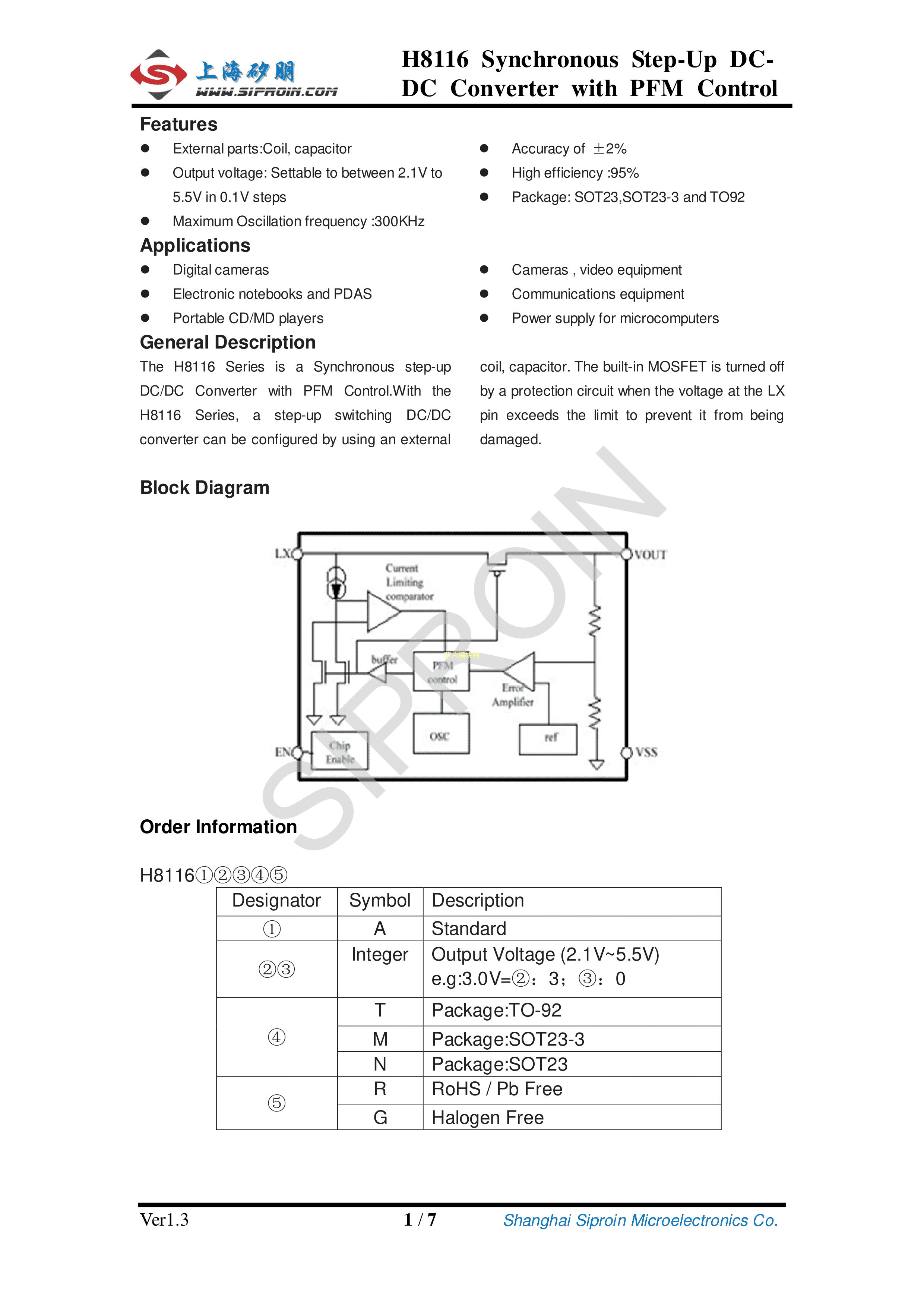H8116A30NR数据手册SOT-23封装Siproin(上海矽朋)PDF规格书,中英文下载