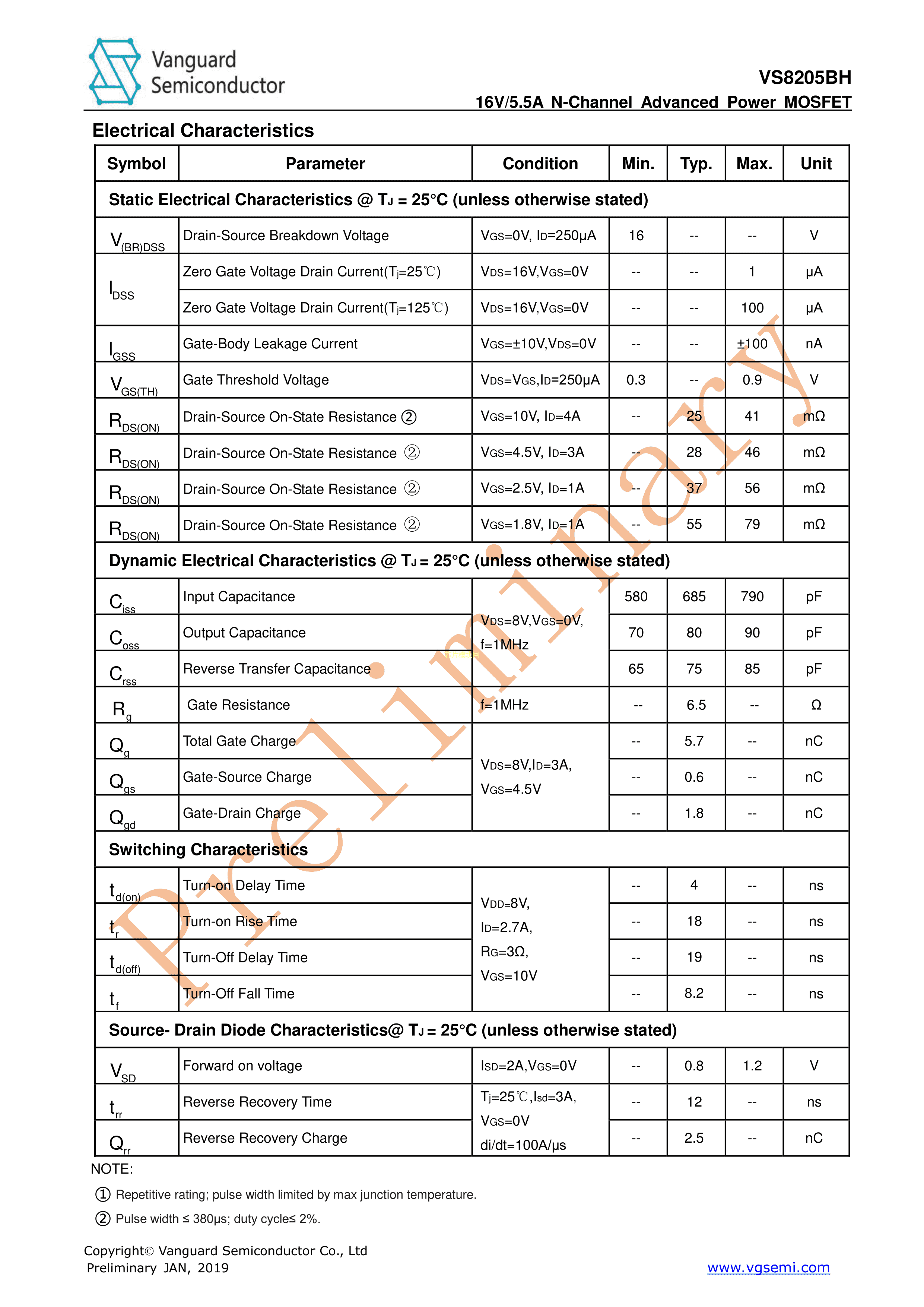 VS8205BH数据手册SOT-23-6L封装Vanguard(威兆)PDF规格书,中英文下载