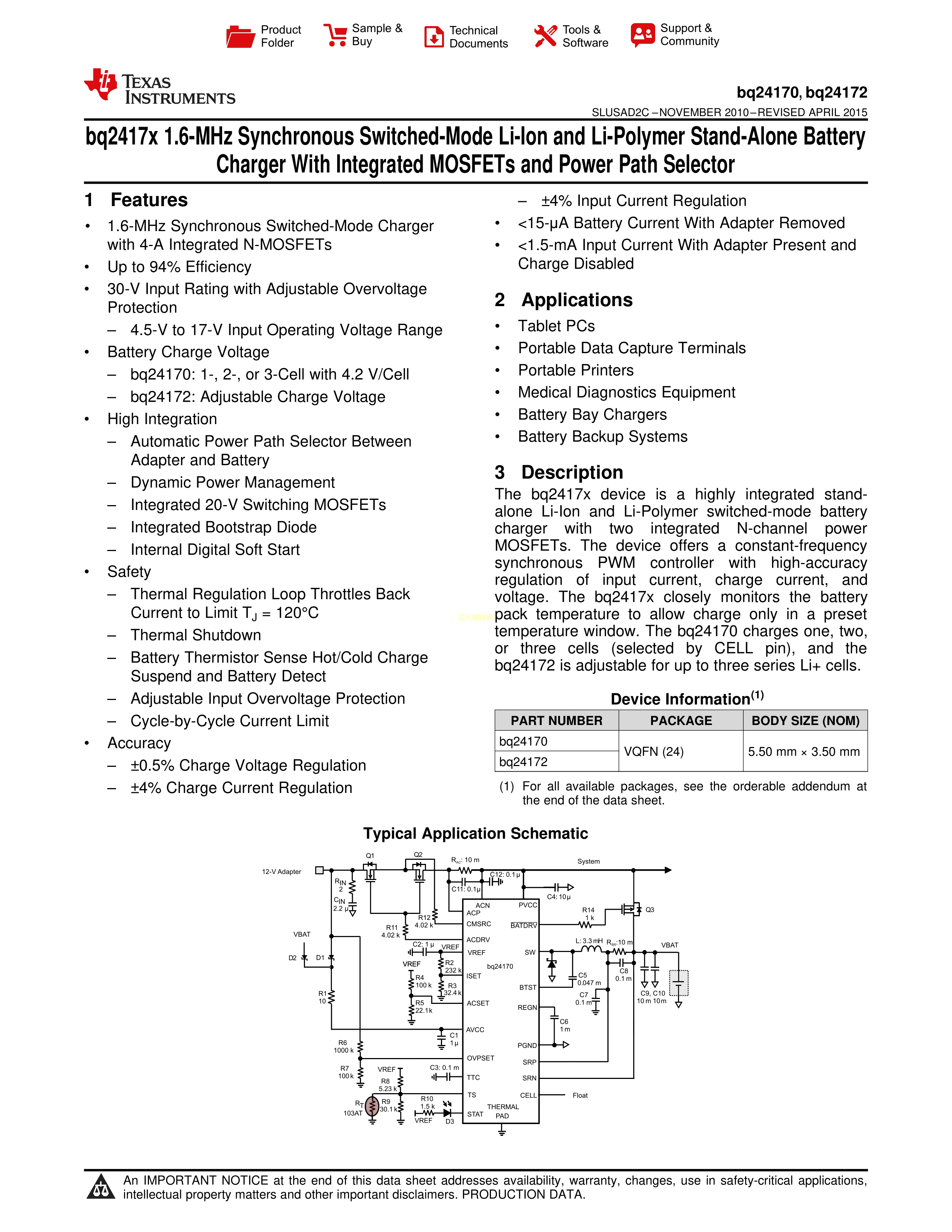 BQ24170RGYR数据手册VQFN-24封装TI(德州仪器)PDF规格书,中英文下载